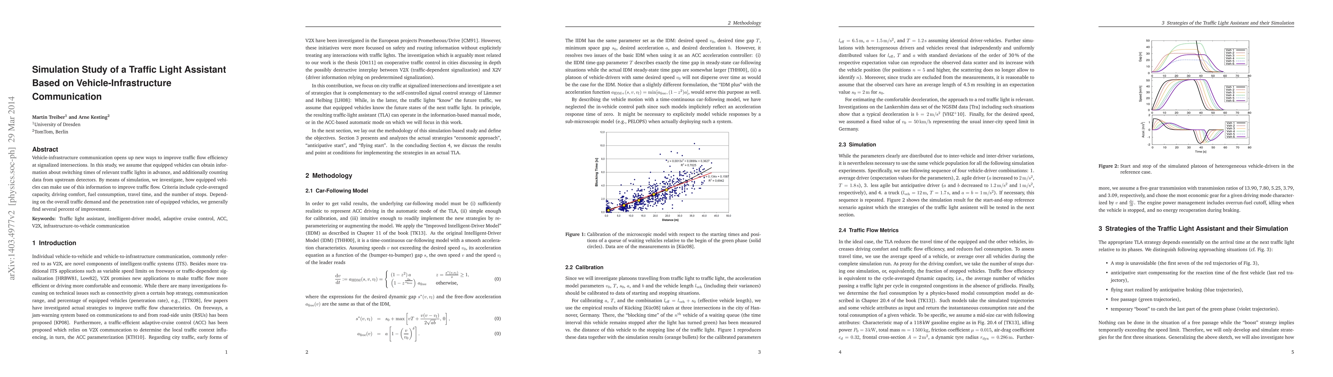 This study simulates a traffic light assistant using vehicle-infrastructure communication to enhance traffic flow at intersections. Equipped vehicles receive advance traffic light switching times and upstream detector data, leading to improvements in cycle-averaged capacity, driving comfort, fuel consumption, travel time, and reduced stops, with overall gains of several percent based on traffic demand and vehicle penetration rates.