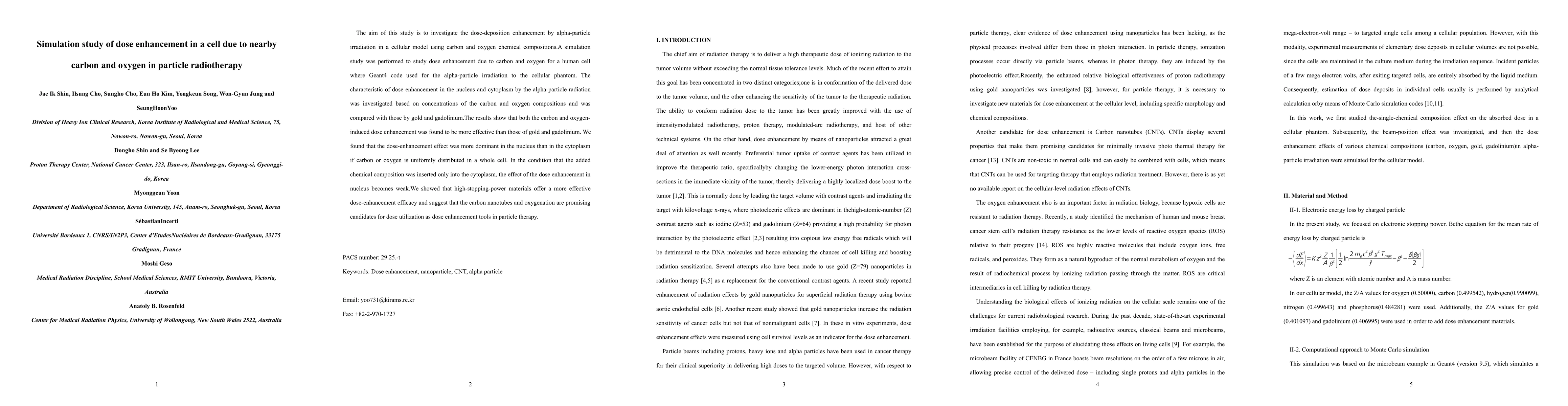 The aim of this study is to investigate the dose-deposition enhancement by alpha-particle irradiation in a cellular model using carbon and oxygen chemical compositions.A simulation study was performed to study dose enhancement due to carbon and oxygen for a human cell where Geant4 code used for the alpha-particle irradiation to the cellular phantom. The characteristic of dose enhancement in the nucleus and cytoplasm by the alpha-particle radiation was investigated based on concentrations of the carbon and oxygen compositions and was compared with those by gold and gadolinium.The results show that both the carbon and oxygen-induced dose enhancement was found to be more effective than those of gold and gadolinium. We found that the dose-enhancement effect was more dominant in the nucleus than in the cytoplasm if carbon or oxygen is uniformly distributed in a whole cell. In the condition that the added chemical composition was inserted only into the cytoplasm, the effect of the dose enhancement in nucleus becomes weak.We showed that high-stopping-power materials offer a more effective dose-enhancement efficacy and suggest that the carbon nanotubes and oxygenation are promising candidates for dose utilization as dose enhancement tools in particle therapy.