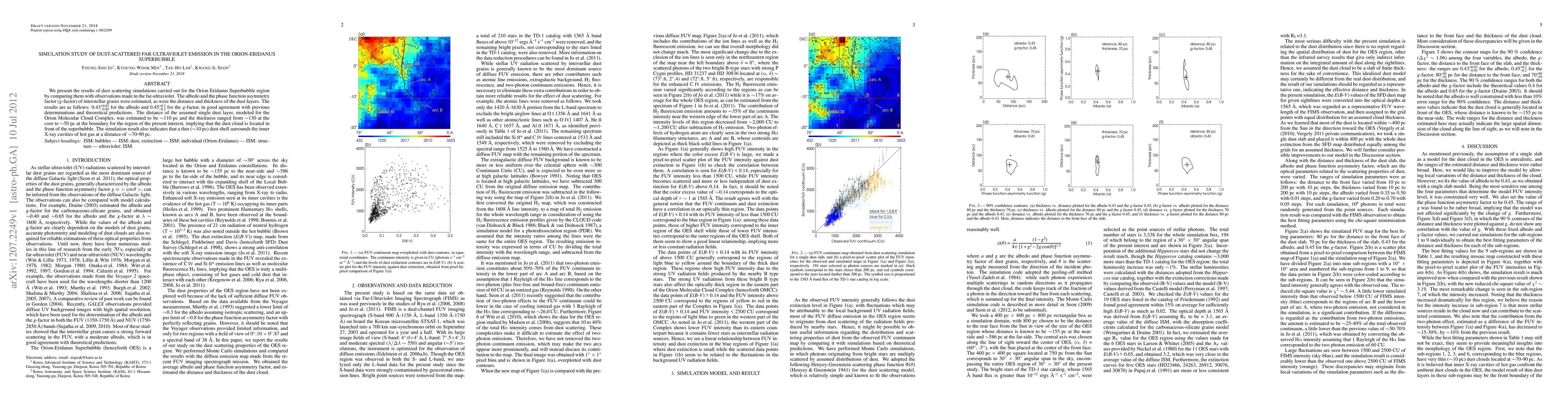 We present the results of dust scattering simulations carried out for the Orion Eridanus Superbubble region by comparing them with observations made in the far-ultraviolet. The albedo and the phase function asymmetry factor (g-factor) of interstellar grains were estimated, as were the distance and thickness of the dust layers. The results are as follows: 0.43$^{+0.02}_{-0.04}$ for the albedo and 0.45$^{+0.2}_{-0.2}$ for the g-factor, in good agreement with previous determinations and theoretical predictions. The distance of the assumed single dust layer, modeled for the Orion Molecular Cloud Complex, was estimated to be ~110 pc and the thickness ranged from ~130 at the core to ~50 pc at the boundary for the region of the present interest, implying that the dust cloud is located in front of the superbubble. The simulation result also indicates that a thin (~10 pc) dust shell surrounds the inner X-ray cavities of hot gas at a distance of ~70-90 pc.