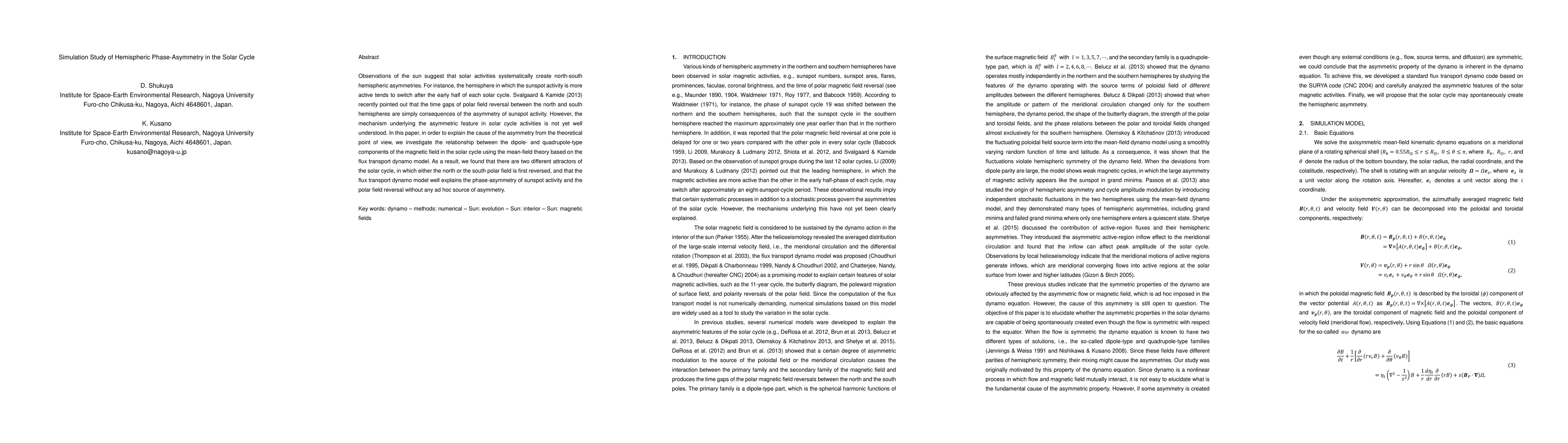 This paper investigates the hemispheric phase-asymmetry in the solar cycle using the flux transport dynamo model, finding two different attractors that explain the reversal order of the north and south polar fields and the asymmetry in sunspot activity. The study concludes that the model can account for these phenomena without requiring additional asymmetric sources.