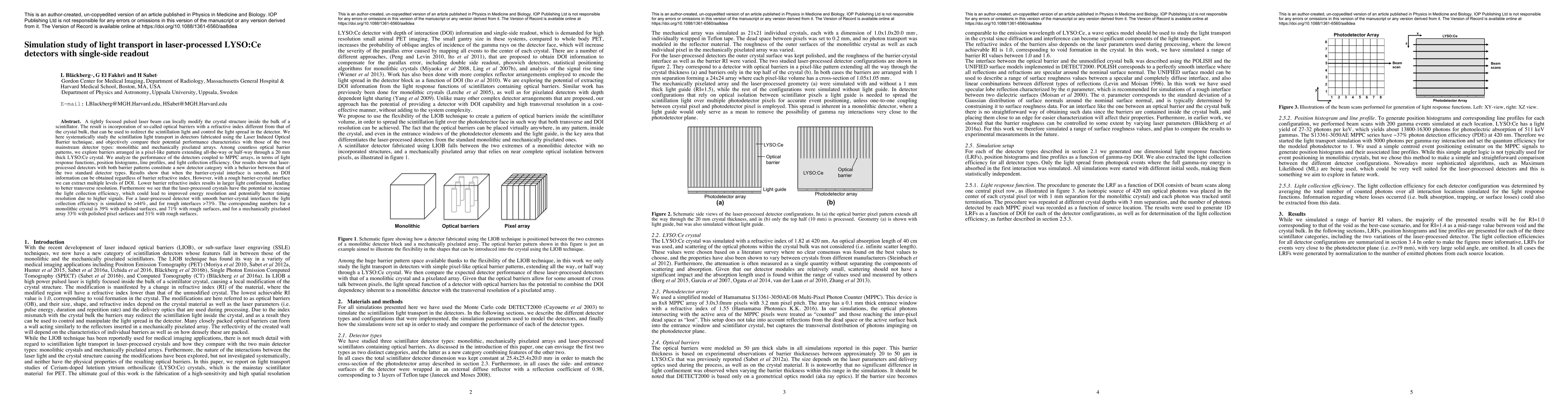 A tightly focused pulsed laser can locally modify the crystal structure inside the bulk of a scintillator. The result is incorporation of so-called optical barriers with a refractive index (RI) different from that of the crystal bulk, that can be used to redirect the scintillation light and control the light spread in the detector. We systematically study the scintillation light transport in detectors fabricated using the Laser Induced Optical Barrier technique, and objectively compare their potential performance characteristics with the two mainstream detector types: monolithic and mechanically pixelated arrays. Among countless optical barrier patterns, we explore barriers arranged in a pixel-like pattern extending all-way or half-way through a 20 mm thick LYSO:Ce crystal. We analyze the performance of the detectors coupled to MPPC arrays, in terms of light response functions, position histograms, line profiles, and light collection efficiency. Our results show that laser-processed detectors constitute a new detector category with a behavior between the two standard detector types. When the barrier-crystal interface is smooth, no DOI information can be obtained regardless of barrier RI. However, with a rough barrier-crystal interface we can extract multiple DOI levels. Lower barrier RI results in larger light confinement, leading to better transverse resolution. Laser-processed crystals can also potentially increase the light collection efficiency, which could lead to improved energy resolution and timing resolution due to higher signals. For a laser-processed detector with smooth barrier-crystal interfaces the light collection efficiency is simulated to >44%, and for rough interfaces >73%. The numbers for a monolithic crystal is 39% with polished surfaces, and 71% with rough surfaces, and for a mechanically pixelated array 33% with polished pixel surfaces and 51% with rough surfaces.