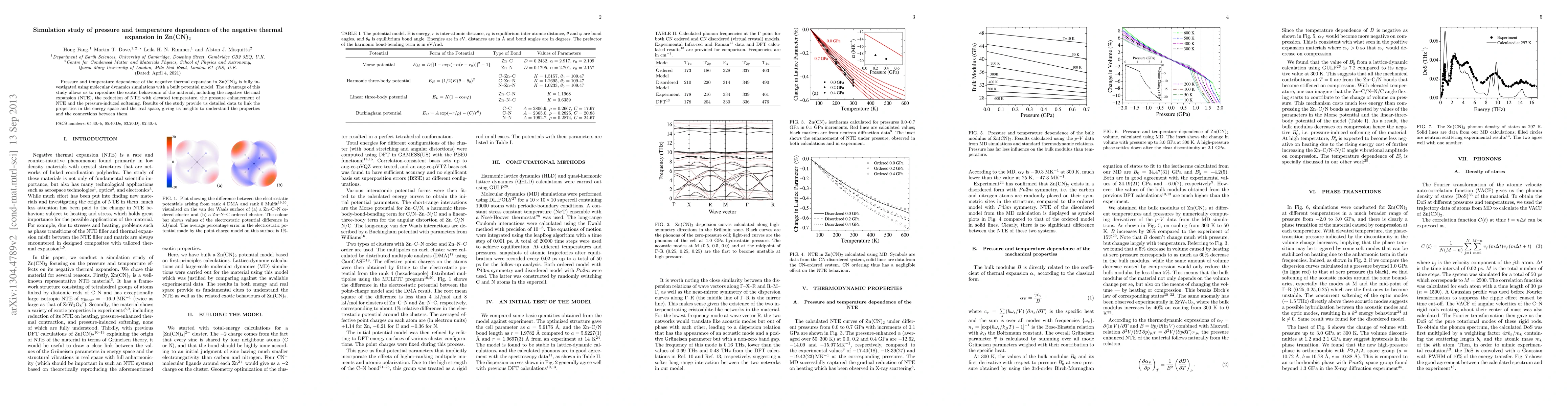 This study investigates the pressure and temperature dependence of negative thermal expansion in Zn(CN)$_2$ using molecular dynamics simulations. The simulations reveal the material's exotic behaviors, including NTE, its reduction with temperature, and pressure-induced softening, providing insights into the connections between energy and real space properties.