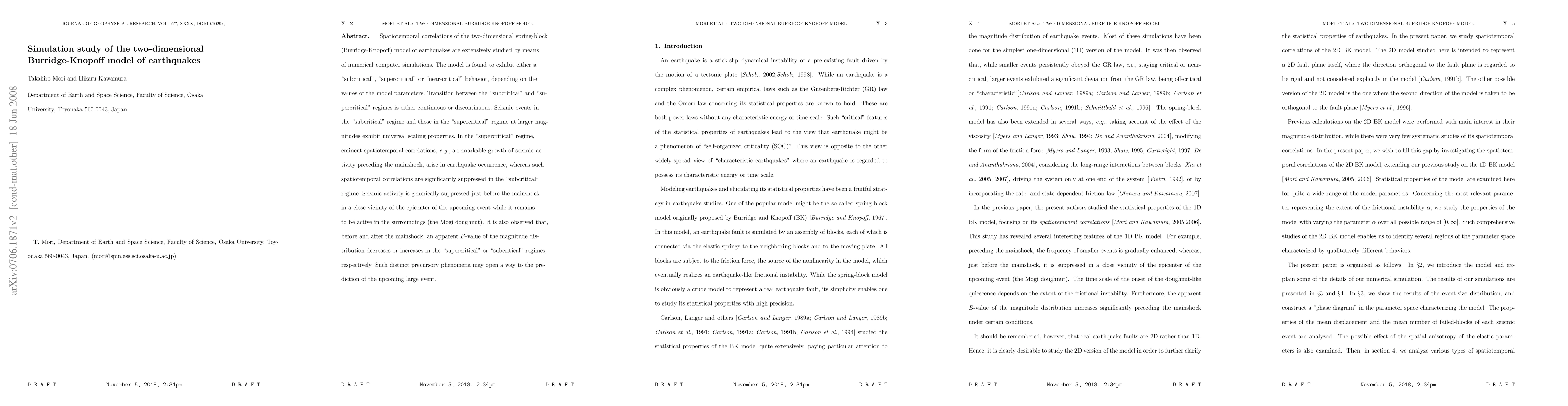 This paper investigates the spatiotemporal correlations in the two-dimensional Burridge-Knopoff model of earthquakes through numerical simulations, revealing distinct behaviors in "subcritical" and "supercritical" regimes with potential implications for earthquake prediction. The "supercritical" regime shows significant precursory phenomena, while the "subcritical" regime suppresses seismic activity near the epicenter.