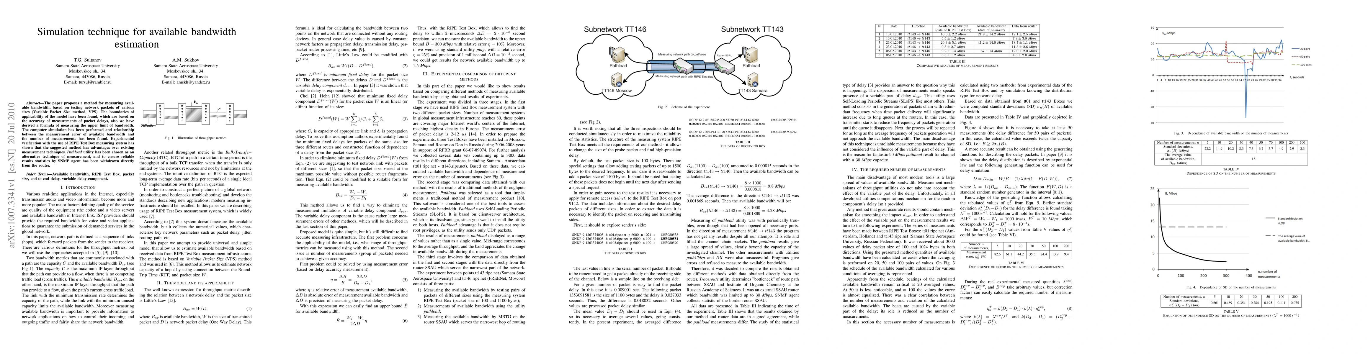 The paper introduces a Variable Packet Size method for estimating available network bandwidth, demonstrating its advantages over existing techniques through simulations and experimental verification. The method's accuracy and upper bandwidth limit formula are validated using the RIPE Test Box and Pathload utility.