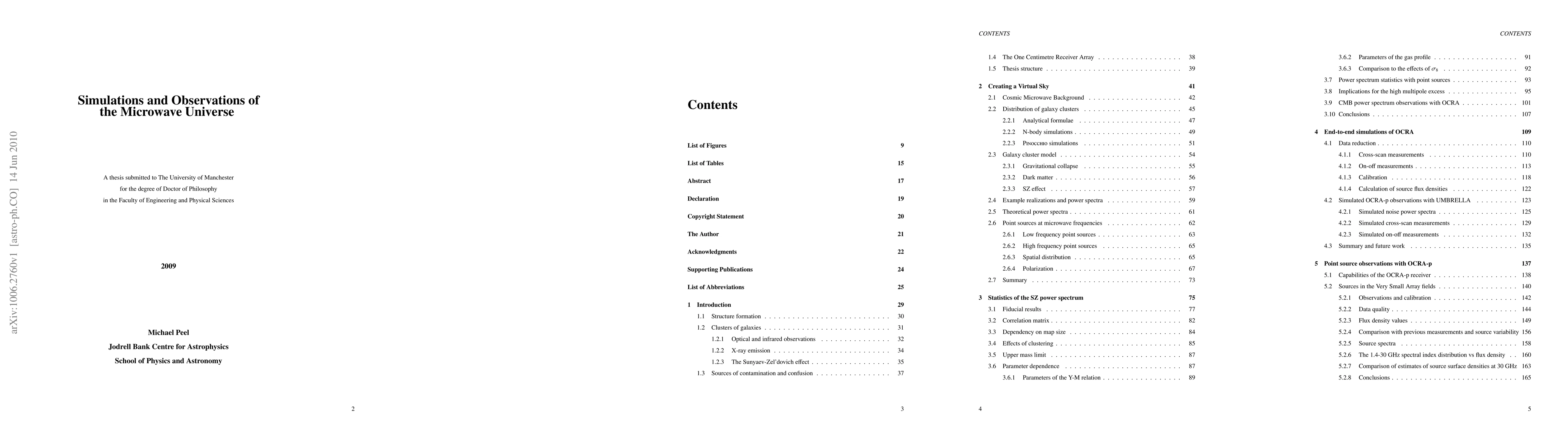 [Abridged] Simulations and observations of the microwave sky are of great importance for understanding the Universe that we reside in. Specifically, knowledge of the CMB and its foregrounds - including the SZ effect from clusters of galaxies and radio point sources - tell us about the Universe on its very largest scales, and also what the Universe is made of. We describe the creation of software to carry out large numbers of virtual sky simulations. The simulations include the CMB, SZ effect and point sources, and are designed to examine the effects of point sources and the SZ effect on present and recent observations of the CMB. Utilizing sets of 1,000 simulations, we find that the power spectrum resulting from the SZ effect is expected to have a larger standard deviation by a factor of 3 than would be expected from purely Gaussian realizations, and is significantly skewed towards increased values for the power spectrum. The effects of the clustering of galaxy clusters, residual point sources and uncertainties in the gas physics are also investigated, as are the implications for the excess power measured in the CMB power spectrum by the CBI and BIMA. We carry out end-to-end simulations for OCRA-p observations of point sources. The introduction of simulated 1/ f noise significantly reduces the predicted ability of the instruments to observe weak sources by measuring the sources for long periods of time. The OCRA-p receiver has been used to observe point sources in the VSA fields so that they can be subtracted from observations of the CMB power spectrum. We find that these point sources are split between steep and flat spectrum sources. We have also observed 550 CRATES flat spectrum radio sources, which will be useful for comparison to Planck satellite observations. Finally, the assembly and commissioning of the OCRA-F receiver is outlined. [Abridged]