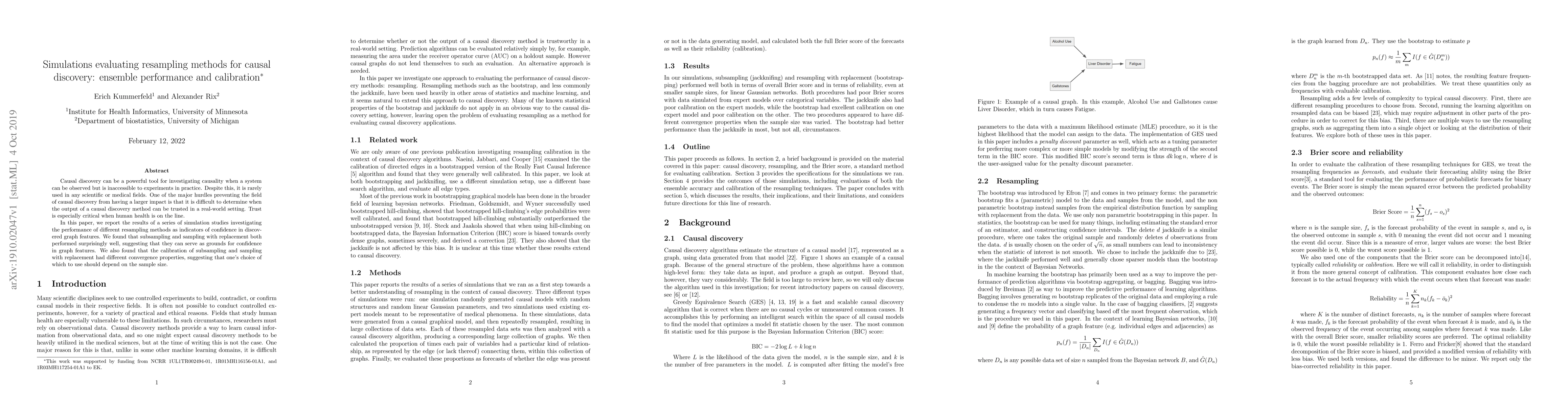 Causal discovery can be a powerful tool for investigating causality when a system can be observed but is inaccessible to experiments in practice. Despite this, it is rarely used in any scientific or medical fields. One of the major hurdles preventing the field of causal discovery from having a larger impact is that it is difficult to determine when the output of a causal discovery method can be trusted in a real-world setting. Trust is especially critical when human health is on the line. In this paper, we report the results of a series of simulation studies investigating the performance of different resampling methods as indicators of confidence in discovered graph features. We found that subsampling and sampling with replacement both performed surprisingly well, suggesting that they can serve as grounds for confidence in graph features. We also found that the calibration of subsampling and sampling with replacement had different convergence properties, suggesting that one's choice of which to use should depend on the sample size.