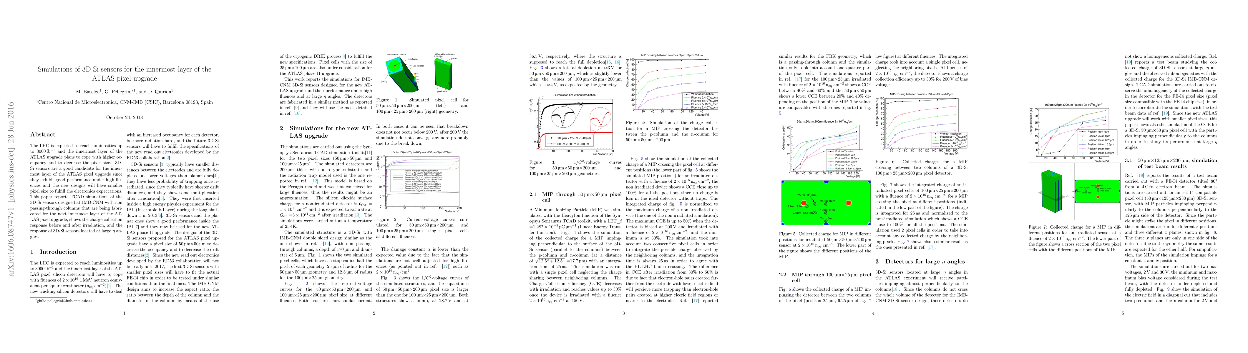 The LHC is expected to reach luminosities up to 3000fb-1 and the innermost layer of the ATLAS upgrade plans to cope with higher occupancy and to decrease the pixel size. 3D-Si sensors are a good candidate for the innermost layer of the ATLAS pixel upgrade since they exhibit good performance under high fluences and the new designs will have smaller pixel size to fulfill the electronics expectations. This paper reports TCAD simulations of the 3D-Si sensors designed at IMB-CNM with non passing-through columns that are being fabricated for the next innermost layer of the ATLAS pixel upgrade, shows the charge collection response before and after irradiation, and the response of 3D-Si sensors located at large $\eta$ angles.