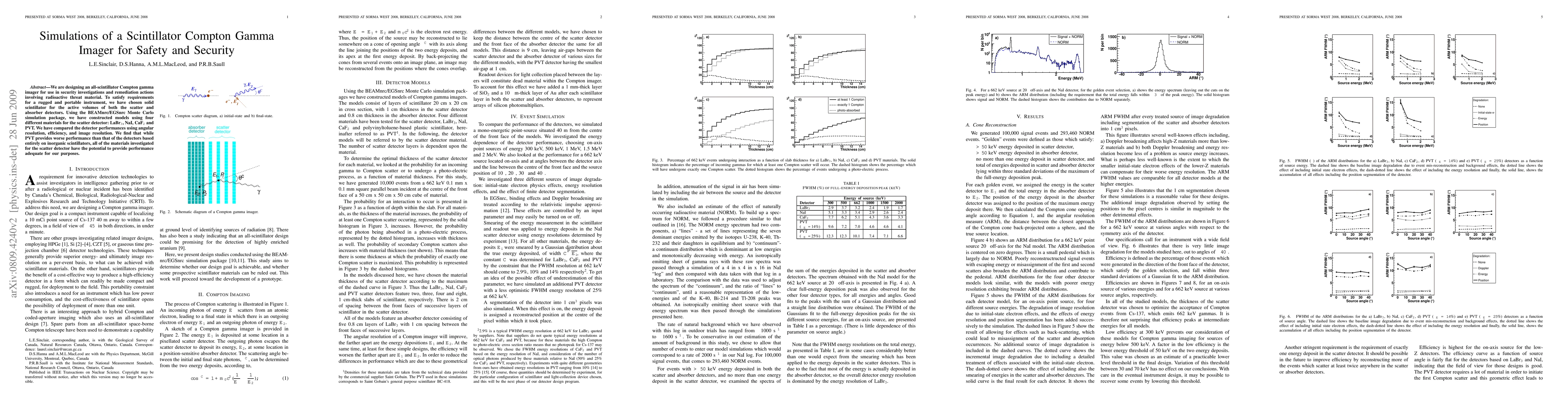 This paper designs an all-scintillator Compton gamma imager for security applications involving radioactive materials. Using Monte Carlo simulations, the authors evaluate four scintillator materials for the scatter detector, finding that while PVT offers lower performance, all materials can meet the instrument's requirements for ruggedness and portability.