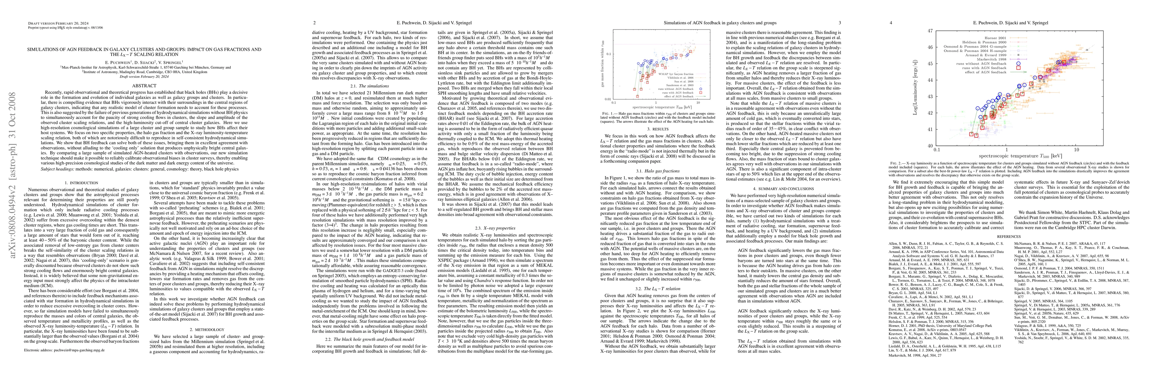 This paper investigates the impact of active galactic nucleus (AGN) feedback from black holes on gas fractions and the X-ray luminosity-temperature scaling relation in galaxy clusters and groups. The study finds that AGN feedback resolves discrepancies between simulations and observations, improving the modeling of cluster formation and enabling more precise cosmological studies.