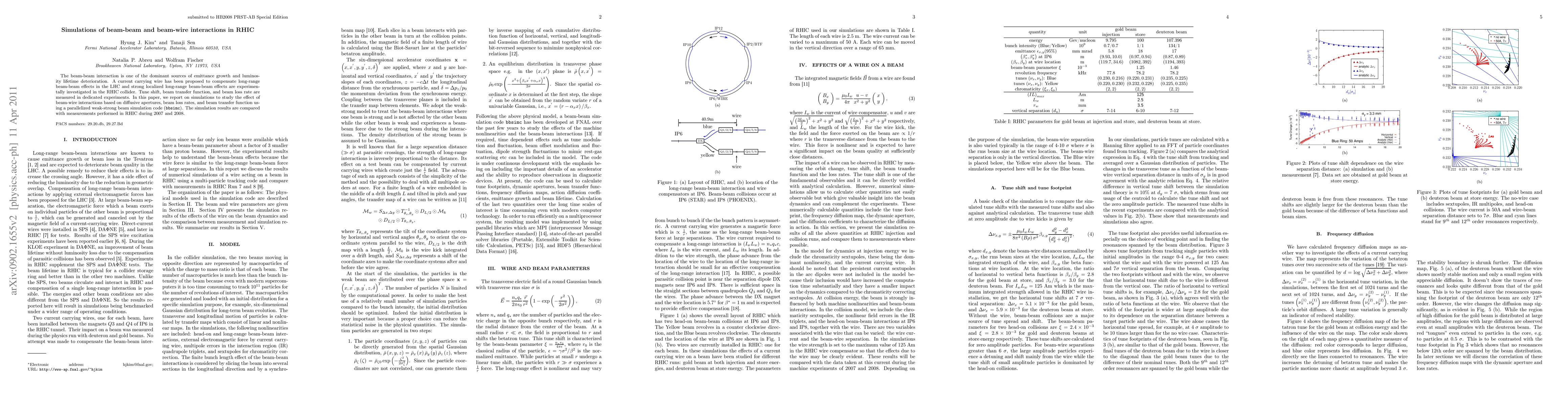This paper reports simulations of beam-beam and beam-wire interactions using a parallelized simulation code (bbsimc) to study effects like tune shift and beam loss rates. The results are compared with experimental measurements from RHIC in 2007 and 2008 to validate the model's accuracy.