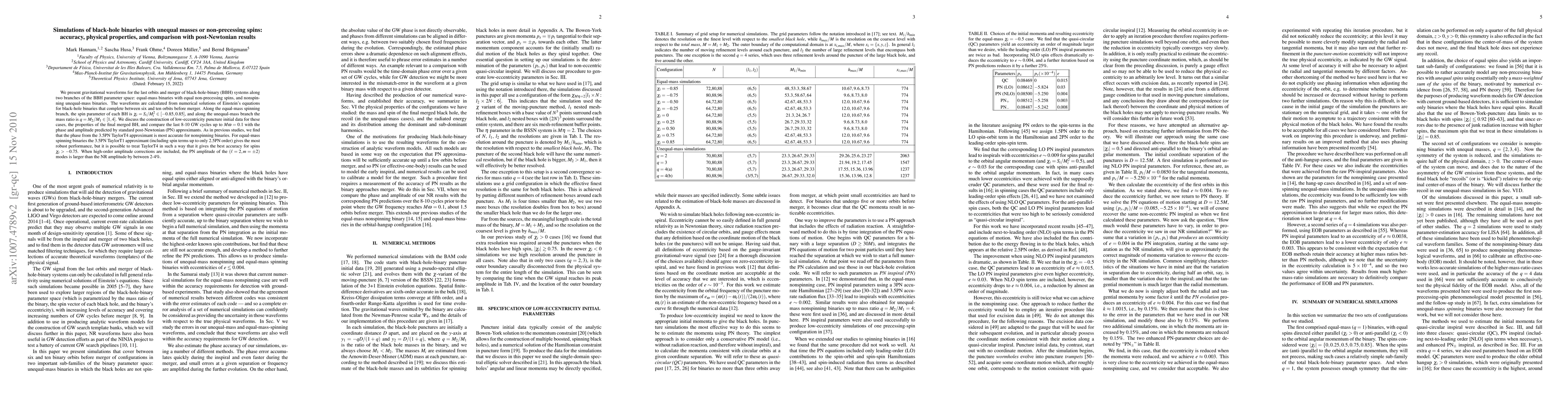 Researchers simulated gravitational waves from black-hole binaries with unequal masses or non-precessing spins, comparing their accuracy to post-Newtonian results.