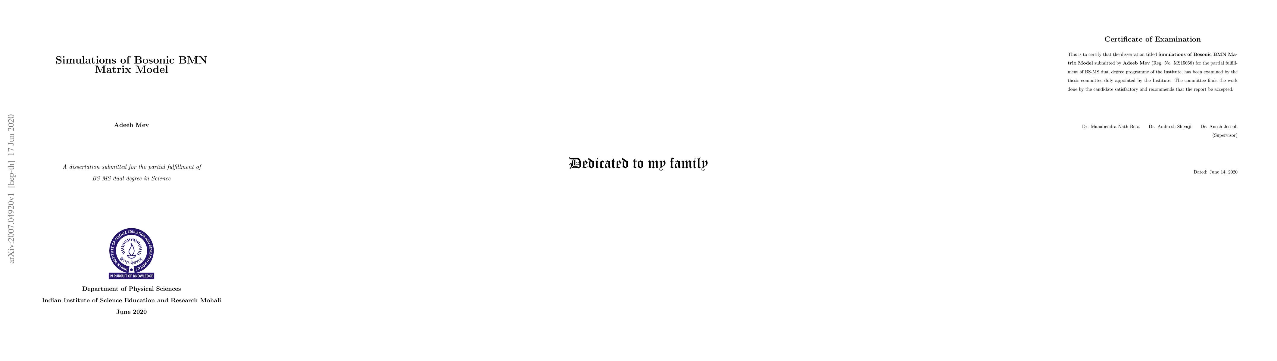 Monte Carlo simulations were used to study the bosonic BMN matrix model