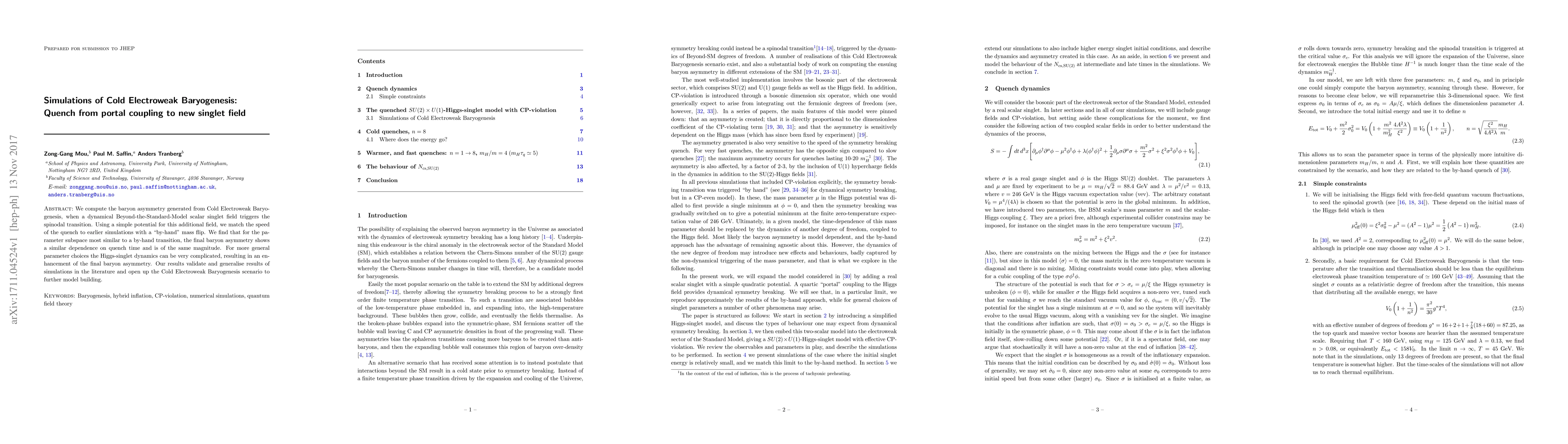 We compute the baryon asymmetry generated from Cold Electroweak Baryogenesis, when a dynamical Beyond-the-Standard-Model scalar singlet field triggers the spinodal transition. Using a simple potential for this additional field, we match the speed of the quench to earlier simulations with a "by-hand" mass flip. We find that for the parameter subspace most similar to a by-hand transition, the final baryon asymmetry shows a similar dependence on quench time and is of the same magnitude. For more general parameter choices the Higgs-singlet dynamics can be very complicated, resulting in an enhancement of the final baryon asymmetry. Our results validate and generalise results of simulations in the literature and open up the Cold Electroweak Baryogenesis scenario to further model building.