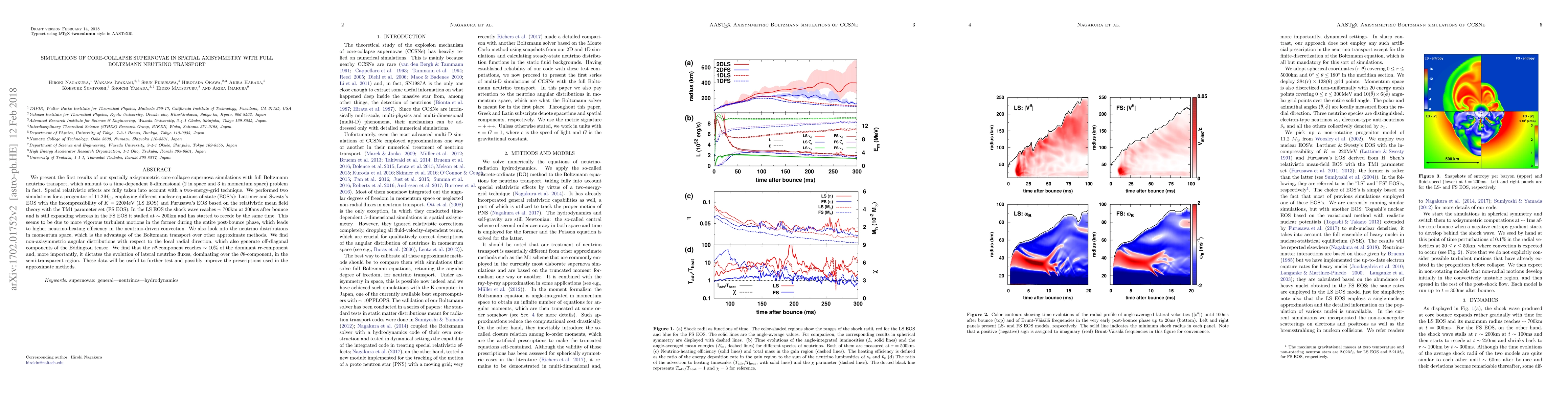 This paper presents the first spatially axisymmetric core-collapse supernova simulations with full Boltzmann neutrino transport, revealing significant differences in shock wave behavior and neutrino-heating efficiency between two nuclear equations-of-state. The LS EOS shows vigorous turbulent motions and higher neutrino-heating, while the FS EOS results in a stalled shock wave.