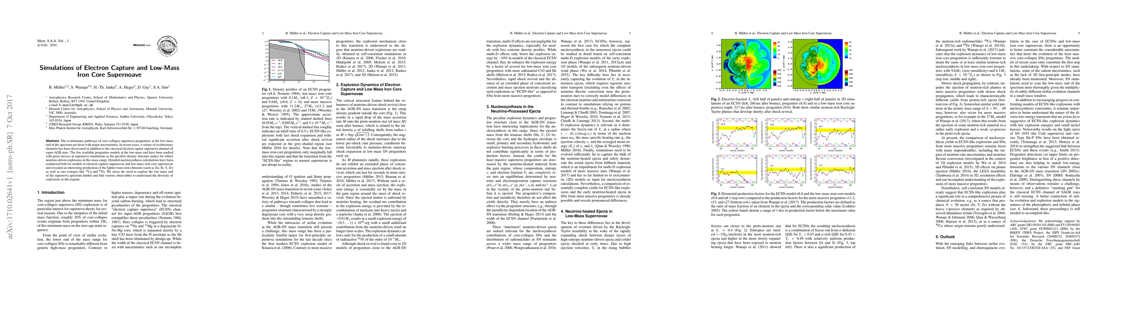 This paper explores the complex evolutionary pathways of low-mass core-collapse supernova progenitors, focusing on electron capture and low-mass iron core supernovae, and highlights the production of lighter trans-iron elements and rare isotopes. It emphasizes the need for further investigation to link diverse observables and understand the variety of explosions in this mass range.