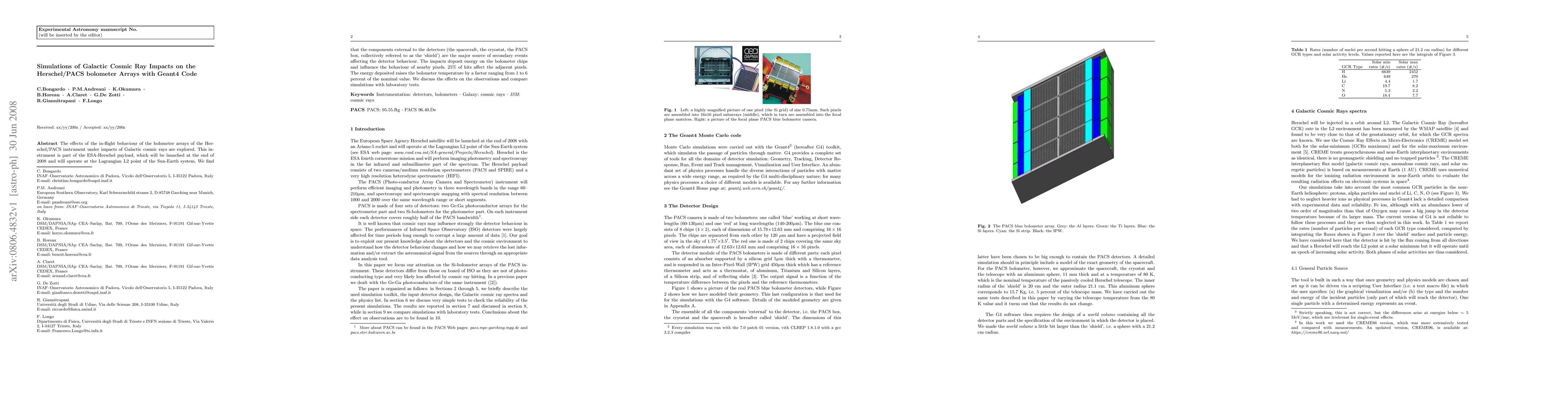 This study investigates the impact of Galactic cosmic rays on the Herschel/PACS bolometer arrays using Geant4 simulations. The results show that the shield components significantly contribute to secondary events affecting the detectors, with 25% of hits influencing adjacent pixels and raising bolometer temperatures by 1-6% of the nominal value.
