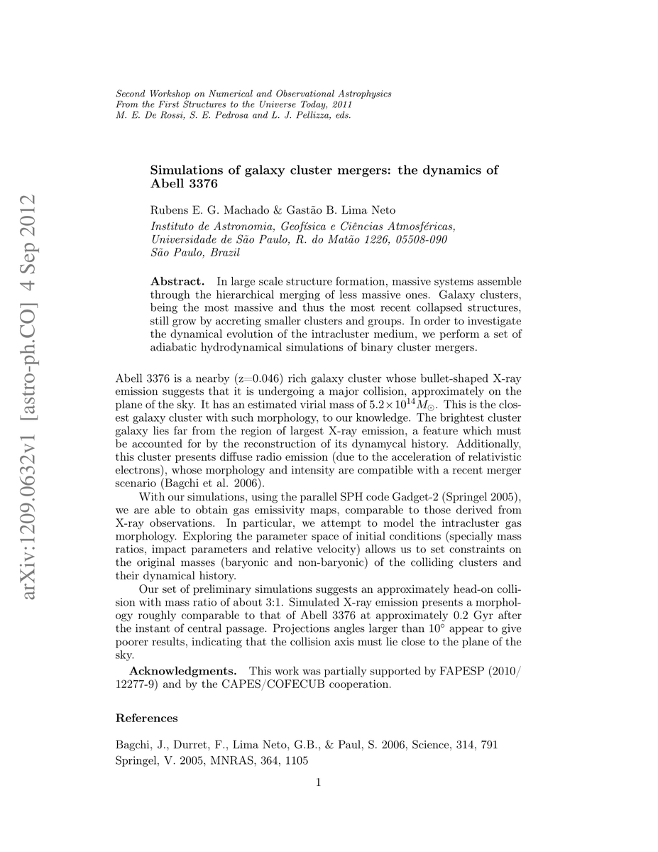 This paper investigates the dynamics of galaxy cluster mergers using adiabatic hydrodynamical simulations of the cluster Abell 3376, focusing on the evolution of the intracluster medium during the hierarchical growth of massive systems. The study aims to understand the complex interactions and processes occurring during such mergers.