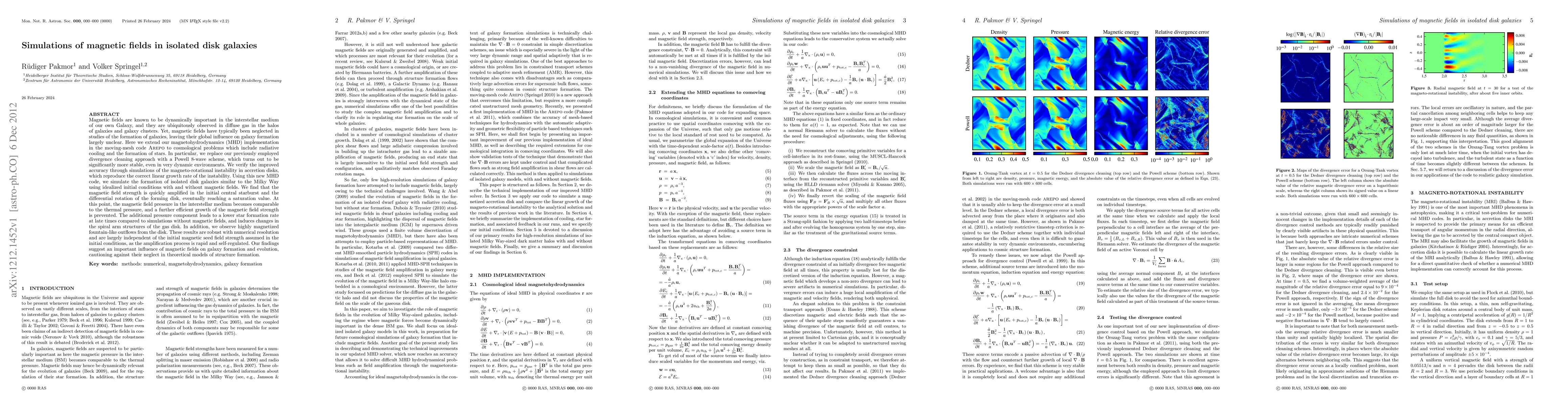 This paper investigates the impact of magnetic fields on the formation and evolution of isolated disk galaxies using advanced magnetohydrodynamic (MHD) simulations. The study finds that magnetic fields amplify during initial starbursts and influence star formation rates and gas disk structures, leading to magnetized outflows and suggesting their crucial role in galaxy formation models.