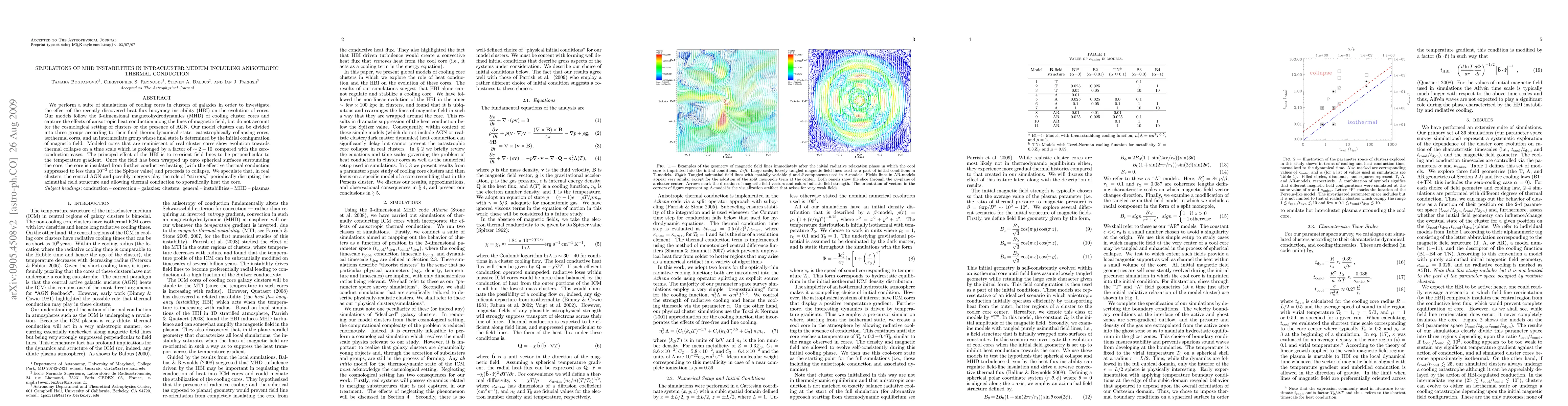 This paper investigates MHD instabilities in cooling cluster cores using simulations that include anisotropic thermal conduction. The simulations reveal that the heat flux buoyancy instability prolongs thermal collapse by a factor of 2-10, re-orienting magnetic field lines and suppressing thermal conduction, leading to different final thermodynamic states of cluster cores.