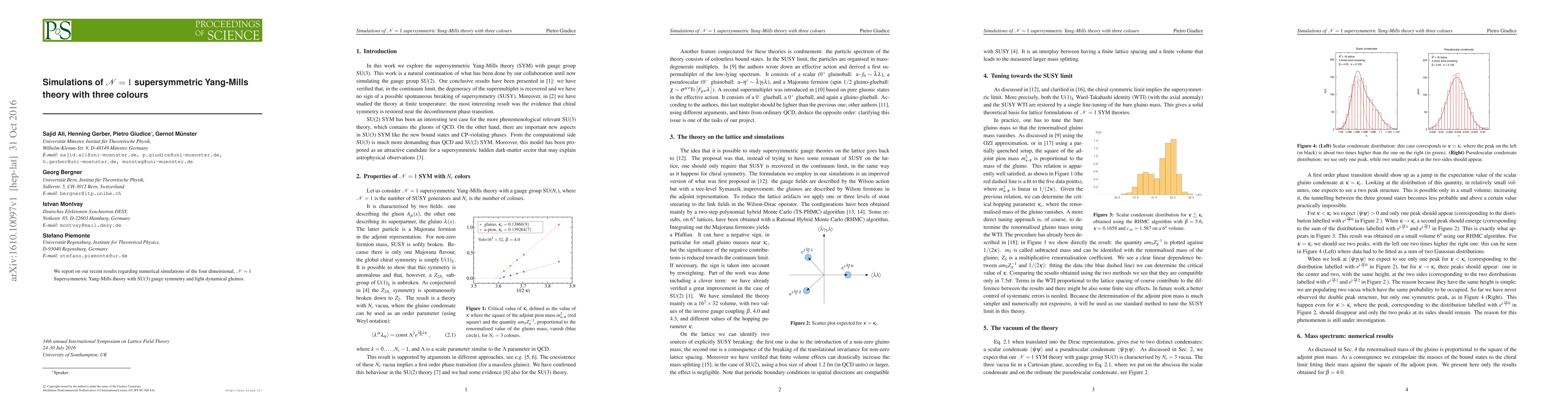 Summary: This study presents numerical simulations of four-dimensional N=1 supersymmetric Yang-Mills theory with SU(3) gauge symmetry, focusing on the behavior of light dynamical gluinos. The results provide insights into the dynamics of supersymmetric gauge theories.