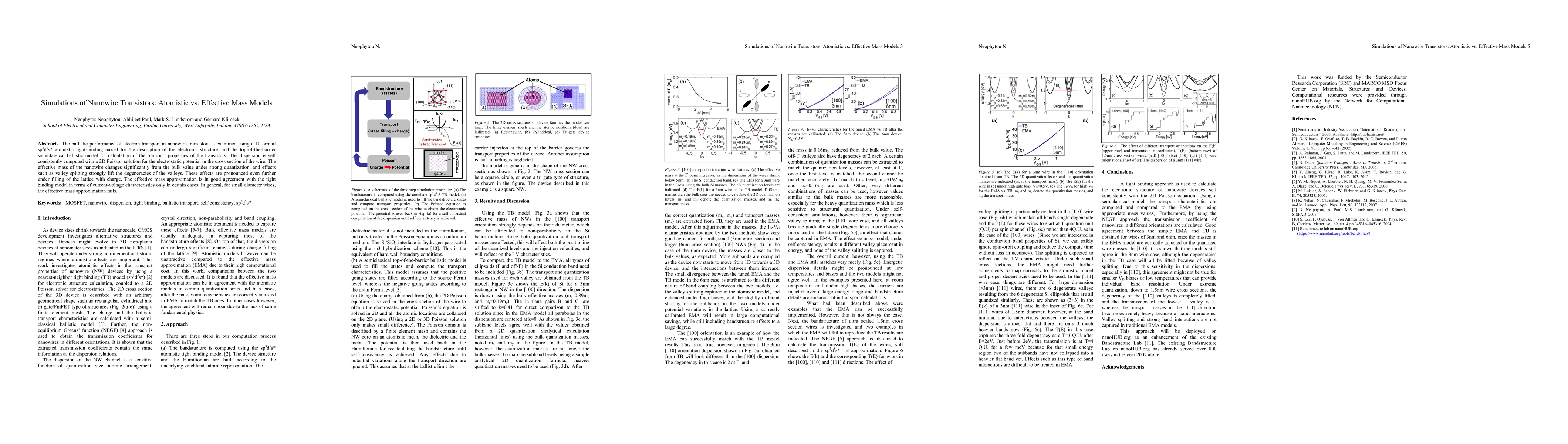 This paper compares atomistic tight-binding and effective mass models for simulating electron transport in nanowire transistors, finding that the effective mass model only agrees with atomistic calculations in specific scenarios, particularly failing for small diameter wires due to strong quantization and valley splitting effects.