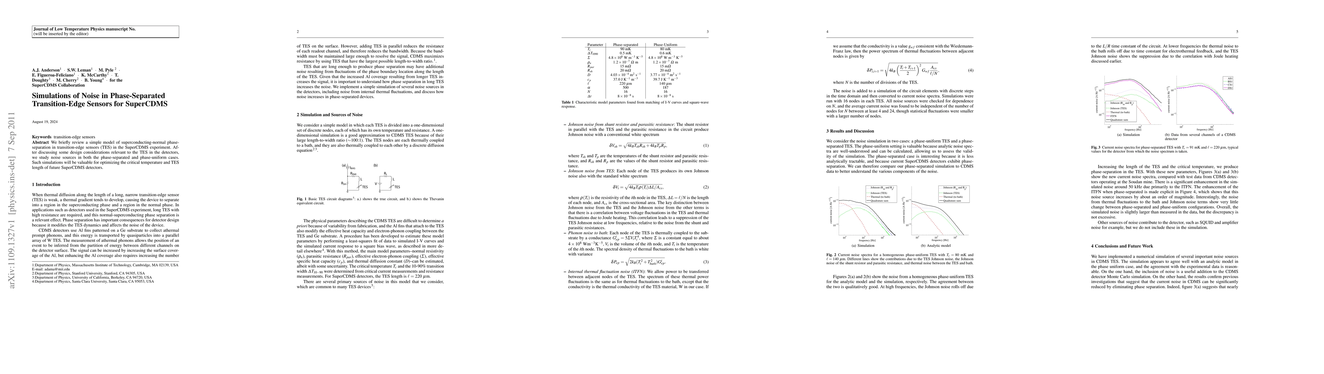 Researchers studied noise sources in transition-edge sensors for SuperCDMS detectors, finding that phase separation leads to reduced noise in both phase-separated and phase-uniform cases.