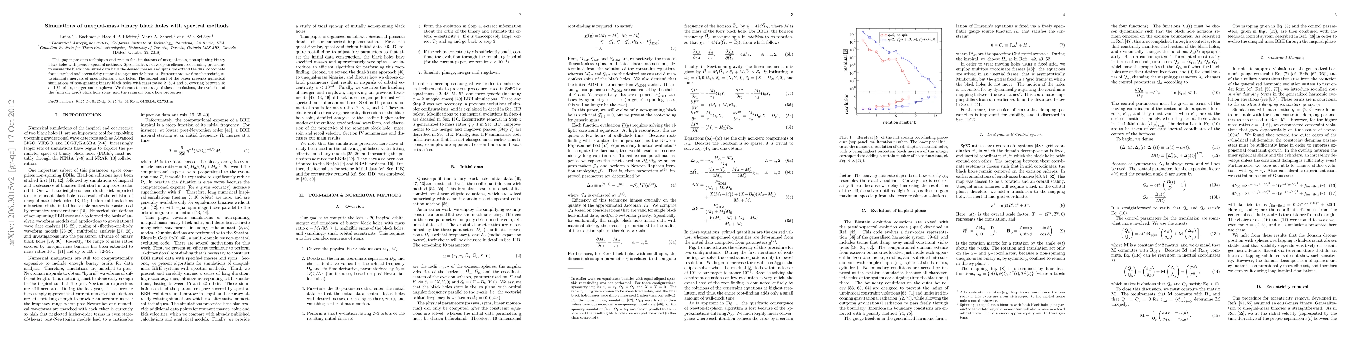 This paper presents techniques and results for simulations of unequal mass, non-spinning black hole binaries with pseudo-spectral methods. Specifically, we develop an efficient root-finding procedure to ensure the black hole initial data have the desired masses and spins, we extend the dual coordinate frame method and eccentricity removal to asymmetric binaries. Furthermore, we describe techniques to simulate mergers of unequal mass black holes. The second part of the paper presents numerical simulations of non-spinning black hole binaries with mass ratios 2, 3, 4 and 6, covering between 15 and 22 orbits, merger and ringdown. We discuss the accuracy of these simulations, the evolution of the (initially zero) black hole spins, and the remnant black hole properties.