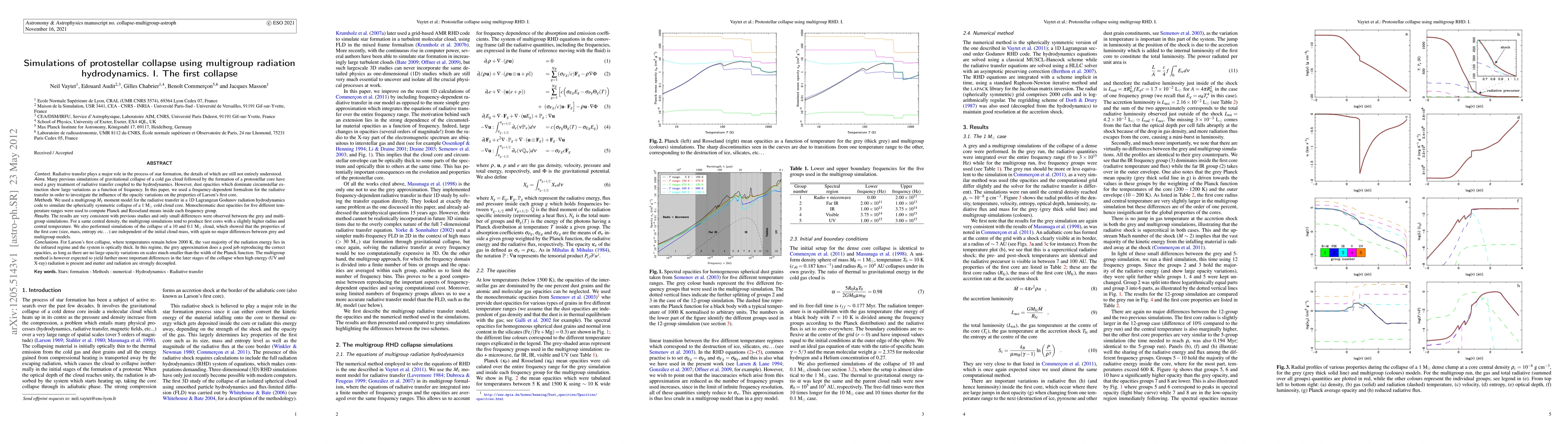 This paper investigates the influence of frequency-dependent radiative transfer on the properties of protostellar collapse using multigroup radiation hydrodynamics. Results show small differences between grey and multigroup models for the first collapse, with multigroup simulations producing slightly larger first cores, but the grey approximation remains effective due to the optically thick IR regime.