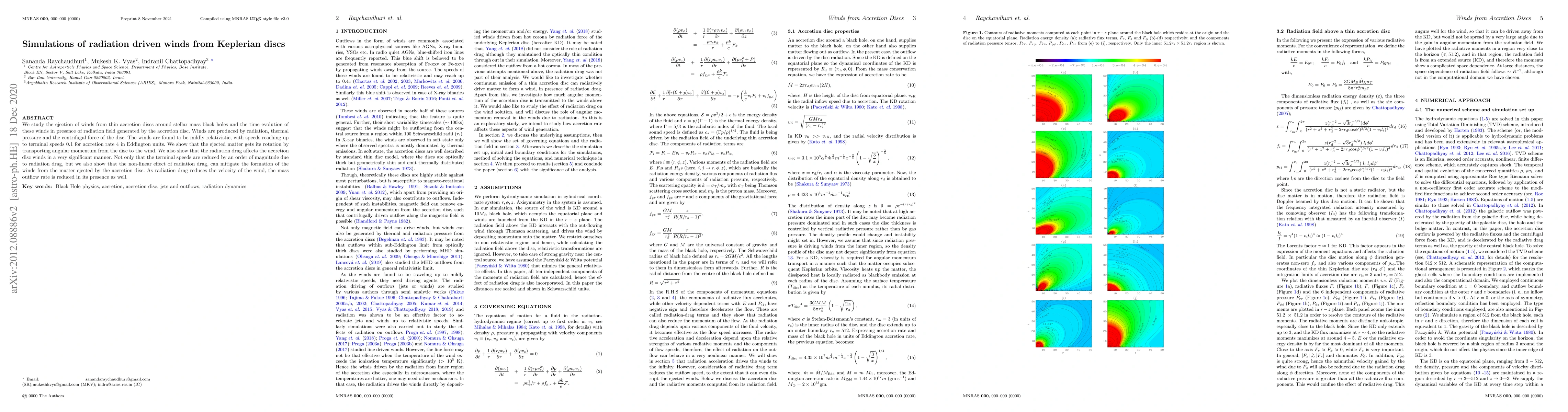 We study the ejection of winds from thin accretion discs around stellar mass black holes and the time evolution of these winds in presence of radiation field generated by the accretion disc. Winds are produced by radiation, thermal pressure and the centrifugal force of the disc. The winds are found to be mildly relativistic, with speeds reaching up to terminal speeds $0.1$ for accretion rate $4$ in Eddington units. We show that the ejected matter gets its rotation by transporting angular momentum from the disc to the wind. We also show that the radiation drag affects the accretion disc winds in a very significant manner. Not only that the terminal speeds are reduced by an order of magnitude due to radiation drag, but we also show that the non-linear effect of radiation drag, can mitigate the formation of the winds from the matter ejected by the accretion disc. As radiation drag reduces the velocity of the wind, the mass outflow rate is reduced in its presence as well.