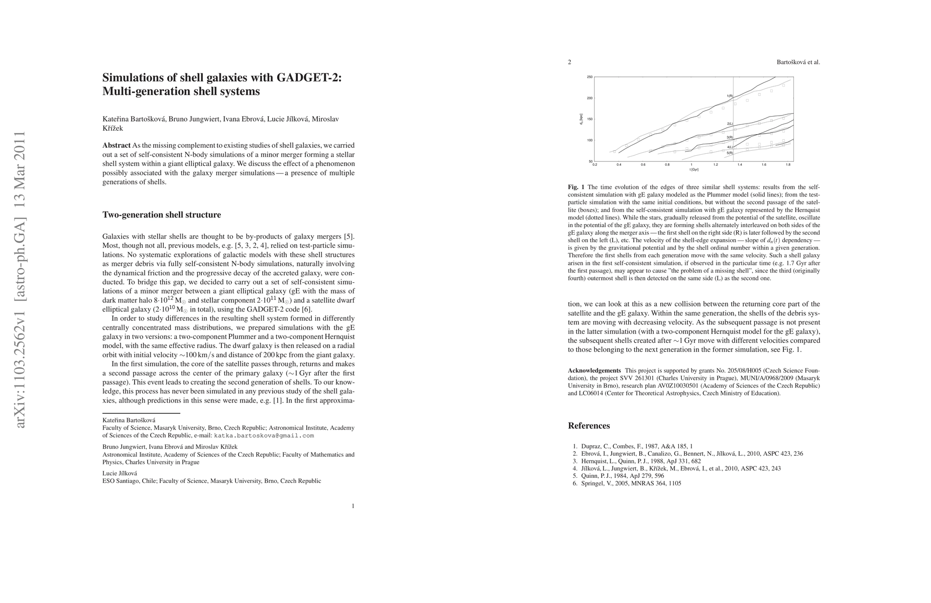 This paper presents N-body simulations using GADGET-2 to study shell galaxies formed through minor mergers, focusing on the emergence of multiple generations of shell systems. The research highlights the complex dynamics and structural evolution of these galaxies post-merger.