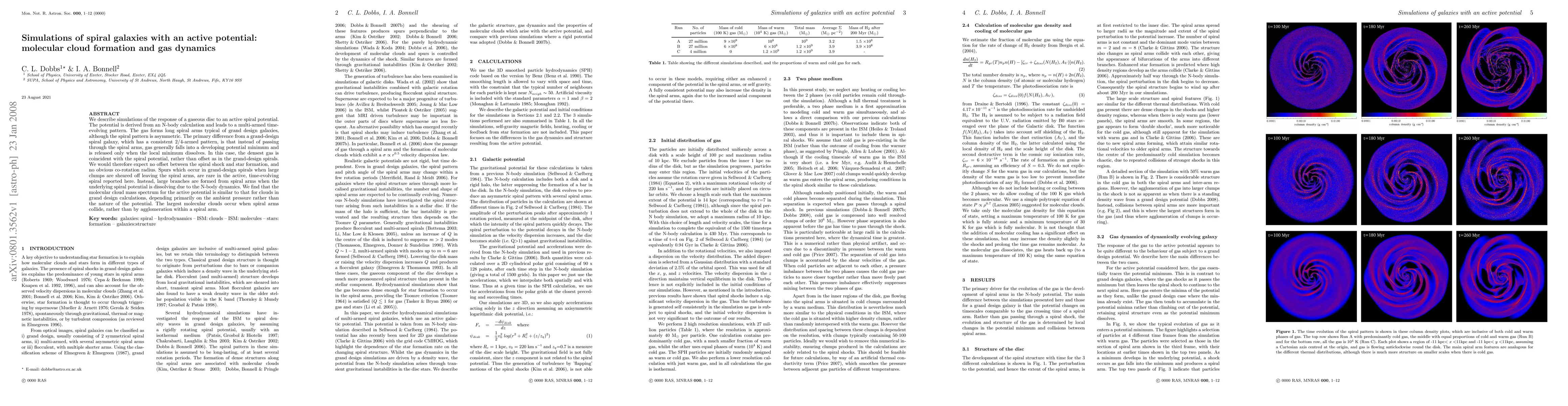 This paper simulates the dynamics of a gaseous disc under an active spiral potential, revealing that gas forms long spiral arms but falls into potential minima rather than passing through them. The study finds that molecular cloud formation is driven by ambient pressure and spiral arm collisions, rather than by the nature of the spiral potential itself.