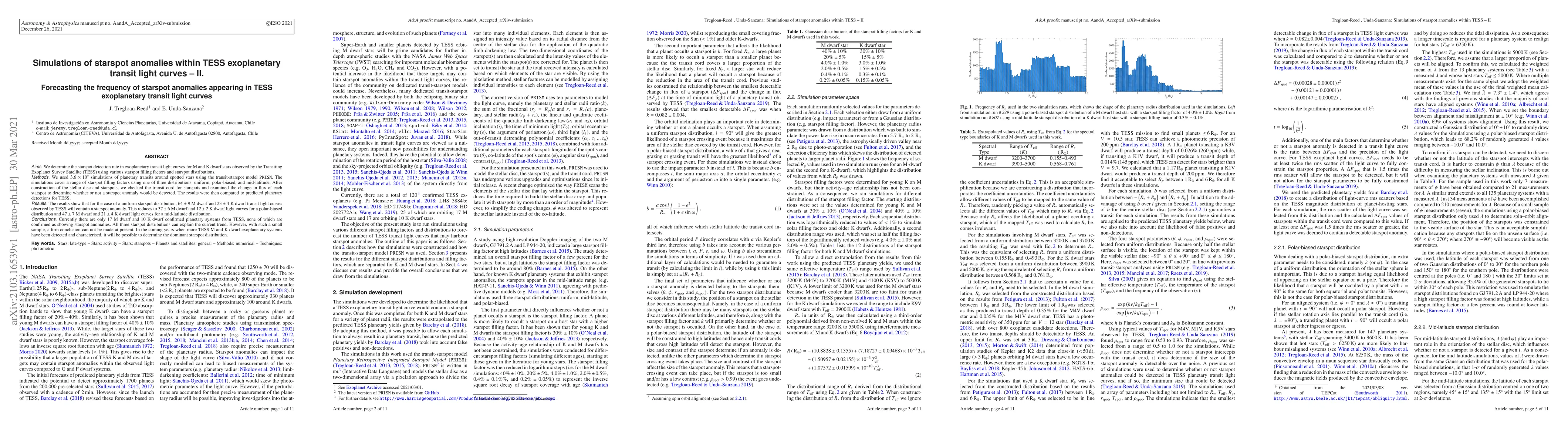 This study simulates starspot anomalies in exoplanetary transit light curves for M and K dwarf stars observed by TESS, using $3.6\times10^9$ transit simulations. It predicts that starspot anomalies will be detected in $64\pm9$ M dwarf and $23\pm4$ K dwarf light curves under a uniform distribution, with variations for polar-biased and mid-latitude distributions. However, with only 17 M dwarf and 10 K dwarf confirmed systems, no definitive conclusion can be drawn yet.