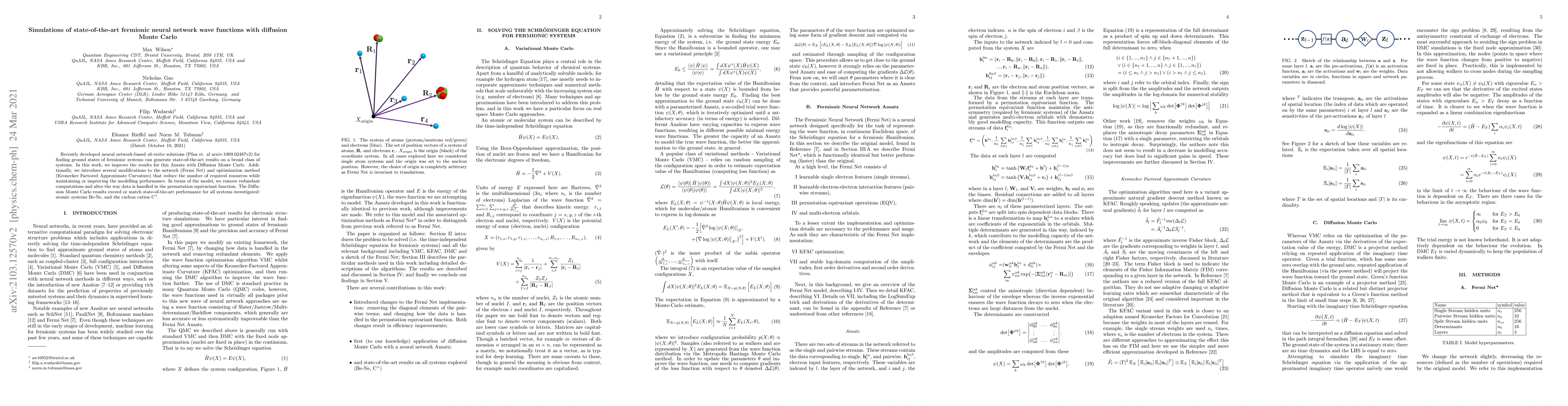 Recently developed neural network-based \emph{ab-initio} solutions (Pfau et. al arxiv:1909.02487v2) for finding ground states of fermionic systems can generate state-of-the-art results on a broad class of systems. In this work, we improve the results for this Ansatz with Diffusion Monte Carlo. Additionally, we introduce several modifications to the network (Fermi Net) and optimization method (Kronecker Factored Approximate Curvature) that reduce the number of required resources while maintaining or improving the modelling performance. In terms of the model, we remove redundant computations and alter the way data is handled in the permutation equivariant function. The Diffusion Monte Carlo results exceed or match state-of-the-art performance for all systems investigated: atomic systems Be-Ne, and the carbon cation C$^+$.