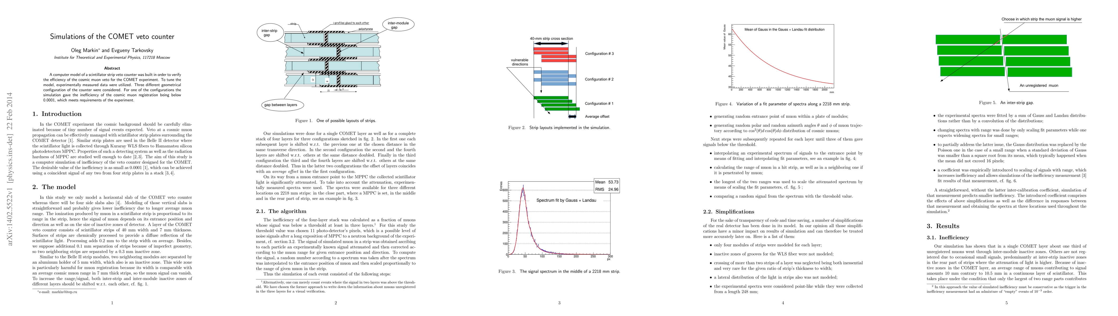 The research paper details the development of a computer model for a scintillator strip veto counter in the COMET experiment. The model, calibrated with experimental data, demonstrated a cosmic muon registration inefficiency below 0.0001 for one geometric configuration, meeting the experiment's requirements.