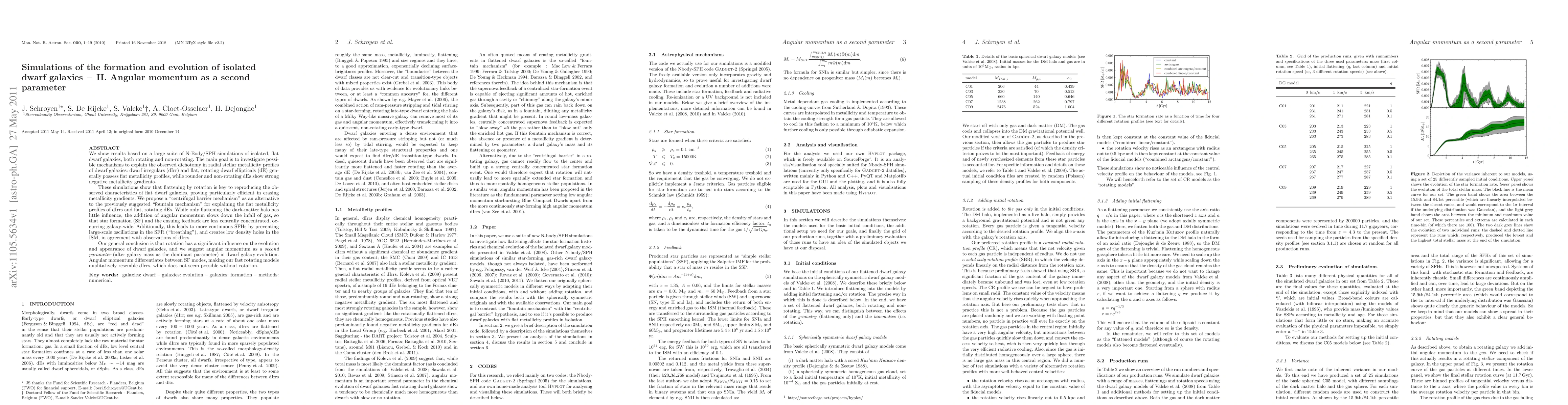 This paper uses N-Body/SPH simulations to explore the formation and evolution of isolated dwarf galaxies, focusing on the role of angular momentum. It finds that rotation flattens galaxies and effectively erases metallicity gradients, proposing a "centrifugal barrier mechanism" to explain the flat metallicity profiles of dwarf irregulars and rotating dwarf ellipticals, and suggesting angular momentum as a second key parameter in dwarf galaxy evolution.