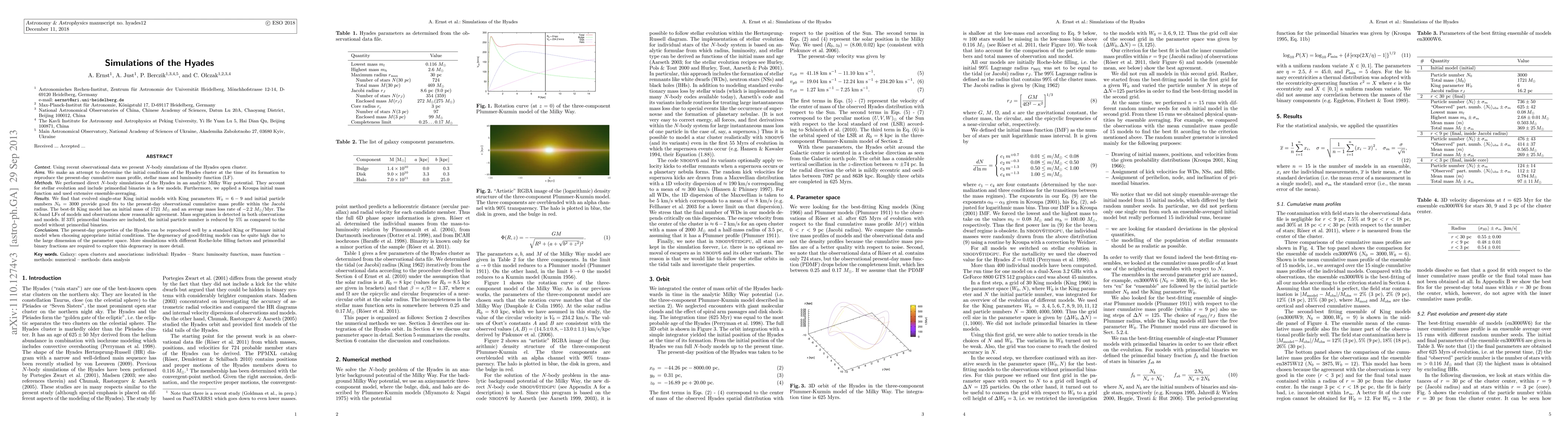 Context: Using the recent observational data of R\"oser et al. we present $N$-body simulations of the Hyades open cluster. Aims: We make an attempt to determine initial conditions of the Hyades cluster at the time of its formation in order to reproduce the present-day cumulative mass profile, stellar mass and luminosity function (LF). Methods: We performed direct $N$-body simulations of the Hyades in an analytic Milky Way potential that account for stellar evolution and include primordial binaries in a few models. Furthermore, we applied a Kroupa (2001) IMF and used extensive ensemble-averaging. Results: We find that evolved single-star King initial models with King parameters $W_0 = 6-9$ and initial particle numbers $N_0 = 3000$ provide good fits to the observational present-day cumulative mass profile within the Jacobi radius. The best-fit King model has an initial mass of $1721\ M_\odot$ and an average mass loss rate of $-2.2 \ M_\odot/\mathrm{Myr}$. The K-band LFs of models and observations show a reasonable agreement. Mass segregation is detected in both observations and models. If 33% primordial binaries are included the initial particle number is reduced by 5% as compared to the model without primordial binaries. Conclusions: The present-day properties of the Hyades can be well reproduced by a standard King or Plummer initial model when choosing appropriate initial conditions. The degeneracy of good-fitting models can be quite high due to the large dimension of the parameter space. More simulations with different Roche-lobe filling factors and primordial binary fractions are required to explore this degeneracy in more detail.
