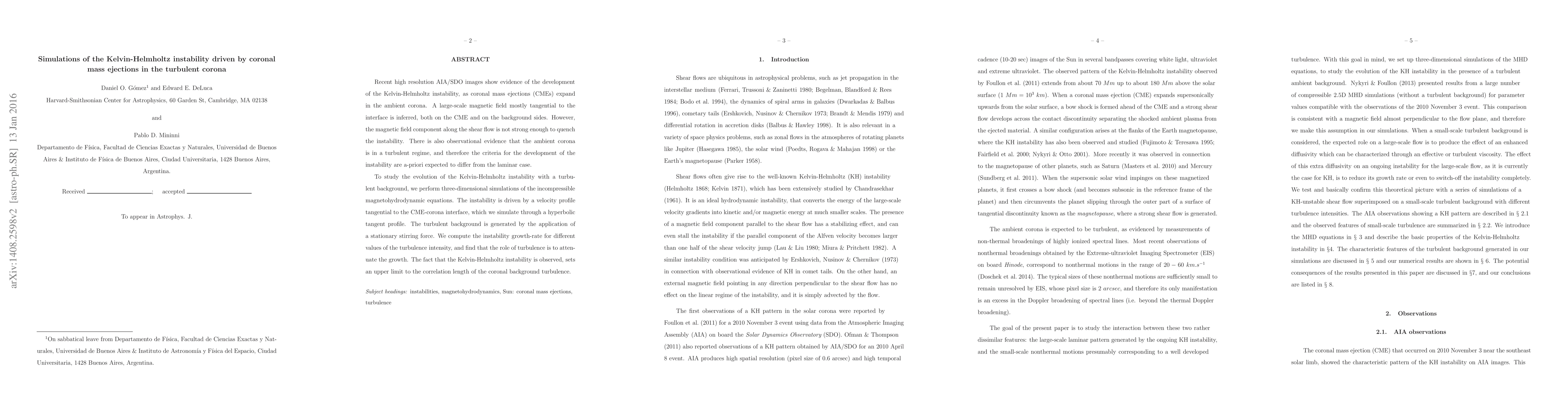Recent high resolution AIA/SDO images show evidence of the development of the Kelvin-Helmholtz instability, as coronal mass ejections (CMEs) expand in the ambient corona. A large-scale magnetic field mostly tangential to the interface is inferred, both on the CME and on the background sides. However, the magnetic field component along the shear flow is not strong enough to quench the instability. There is also observational evidence that the ambient corona is in a turbulent regime, and therefore the criteria for the development of the instability are a-priori expected to differ from the laminar case. To study the evolution of the Kelvin-Helmholtz instability with a turbulent background, we perform three-dimensional simulations of the incompressible magnetohydrodynamic equations. The instability is driven by a velocity profile tangential to the CME-corona interface, which we simulate through a hyperbolic tangent profile. The turbulent background is generated by the application of a stationary stirring force. We compute the instability growth-rate for different values of the turbulence intensity, and find that the role of turbulence is to attenuate the growth. The fact that the Kelvin-Helmholtz instability is observed, sets an upper limit to the correlation length of the coronal background turbulence.