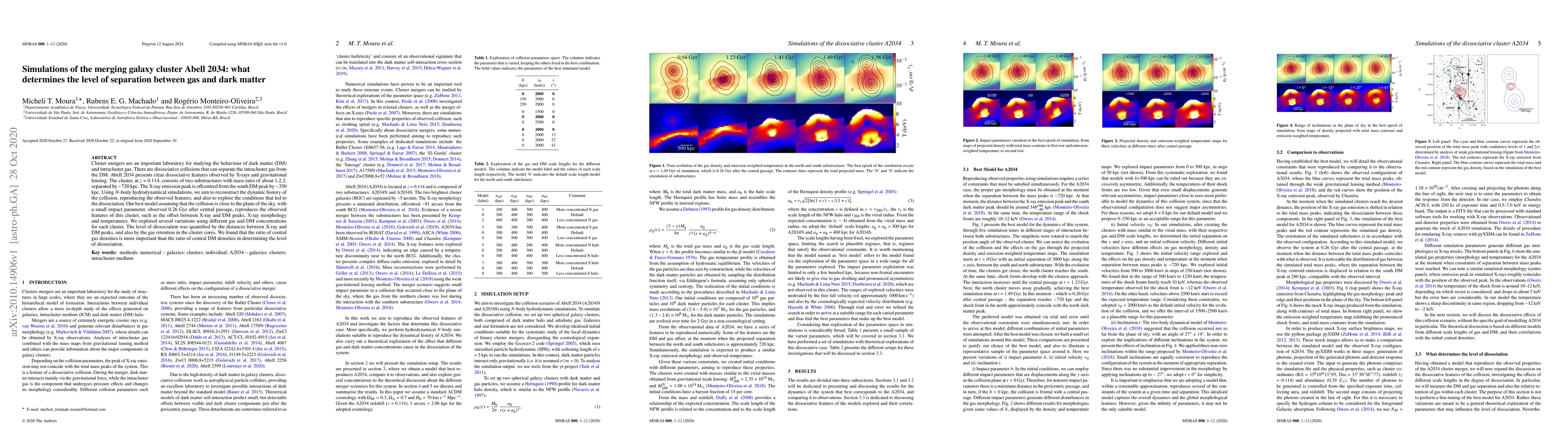 This paper uses N-body hydrodynamical simulations to study the merging galaxy cluster Abell 2034, focusing on the separation between intracluster gas and dark matter (DM). The simulations reveal that the ratio of central gas densities is more crucial than the ratio of central DM densities in determining the level of dissociation observed in the cluster.