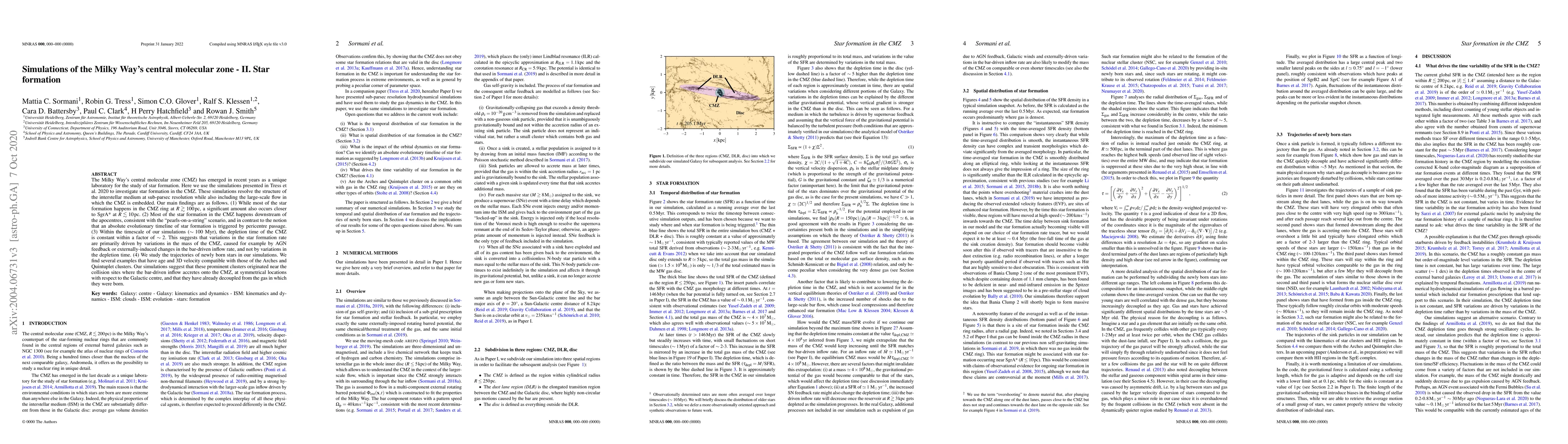 Research simulates star formation in the Milky Way's central molecular zone, revealing that most star birth occurs at distances greater than 100 pc from the center, with significant formation also happening closer to the sun, and that prominent clusters like Arches and Quintuplet likely formed near collision sites where gas is accreted onto the CMZ.