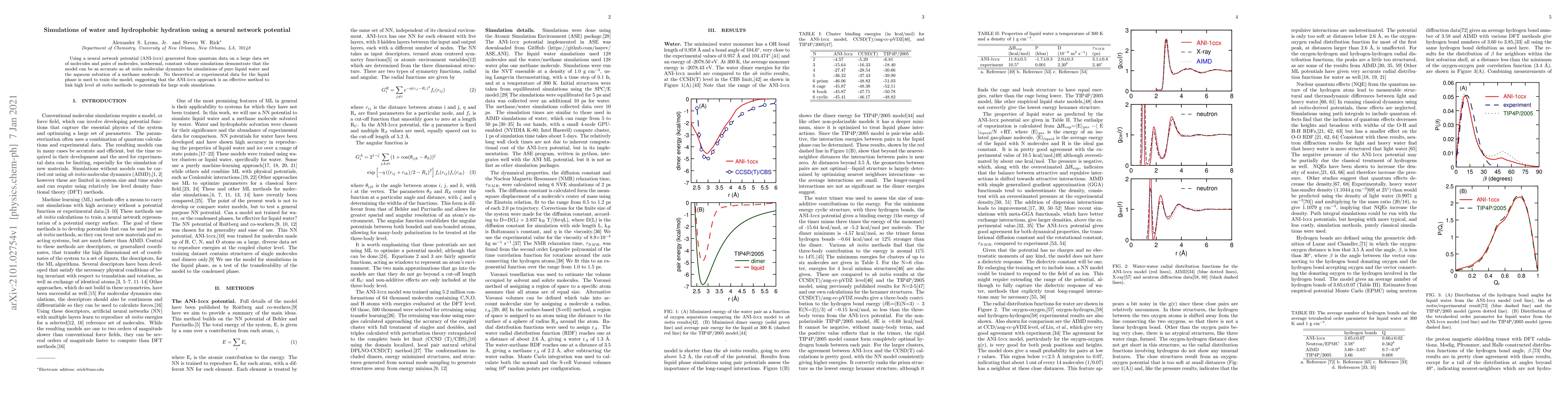 Using a neural network potential (ANI-1ccx) generated from quantum data on a large data set of molecules and pairs of molecules, isothermal, constant volume simulations demonstrate that the model can be as accurate as ab initio molecular dynamics for simulations of pure liquid water and the aqueous solvation of a methane molecule. No theoretical or experimental data for the liquid phase is used to train the model, suggesting that the ANI-1ccx approach is an effective method to link high level ab initio methods to potentials for large scale simulations.