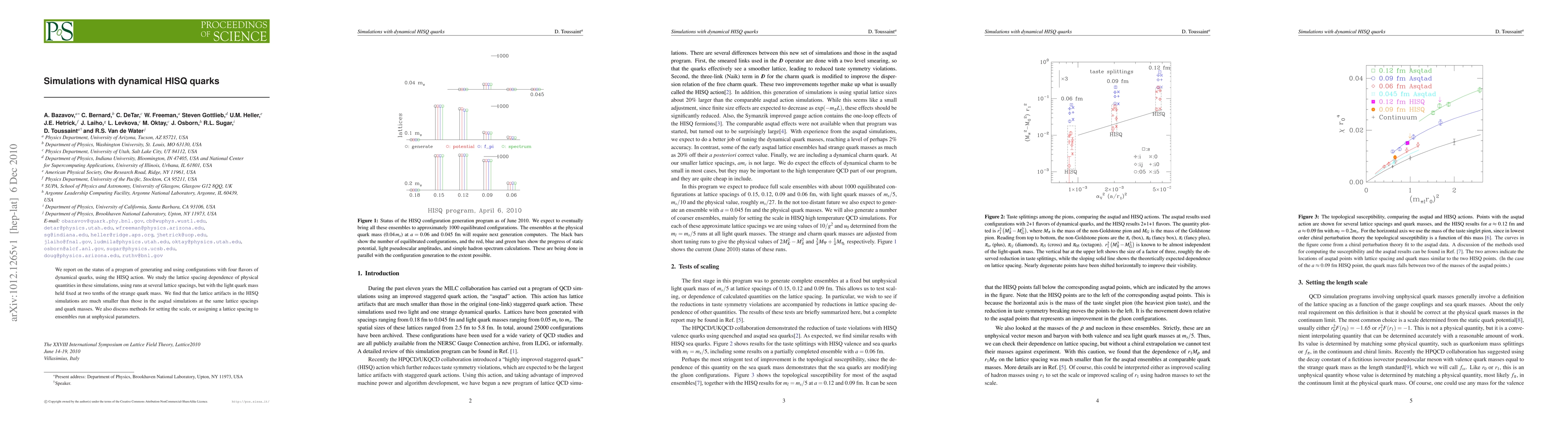 This paper reports on simulations using four flavors of dynamical HISQ quarks, finding significantly reduced lattice artifacts compared to asqtad simulations. The study also explores methods for setting the scale in ensembles run at unphysical parameters.