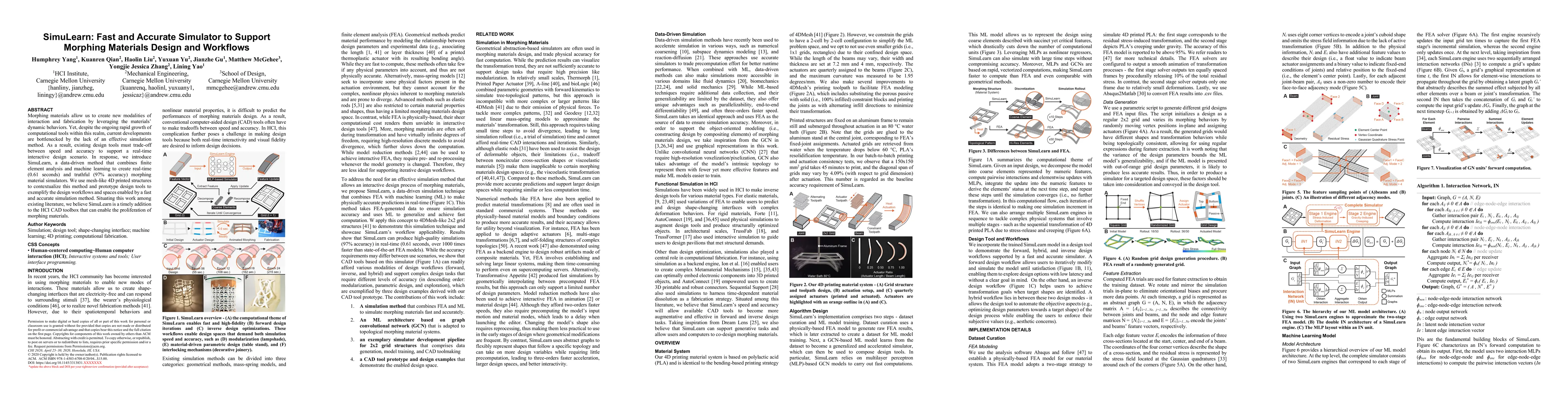 Morphing materials allow us to create new modalities of interaction and fabrication by leveraging dynamic behaviors of materials. Yet, despite the ongoing rapid growth of computational tools within this realm, current developments are bottlenecked by the lack of an effective simulation method. As a result, existing design tools must trade-off between speed and accuracy to support a real-time interactive design scenario. In response, we introduce SimuLearn, a data-driven method that combines finite element analysis and machine learning to create real-time (0.61 seconds) and truthful (97% accuracy) morphing material simulators. We use mesh-like 4D printed structures to contextualize this method and prototype design tools to exemplify the design workflows and spaces enabled by a fast and accurate simulation method. Situating this work among existing literature, we believe SimuLearn is a timely addition to the HCI CAD toolbox that can enable the proliferation of morphing materials.