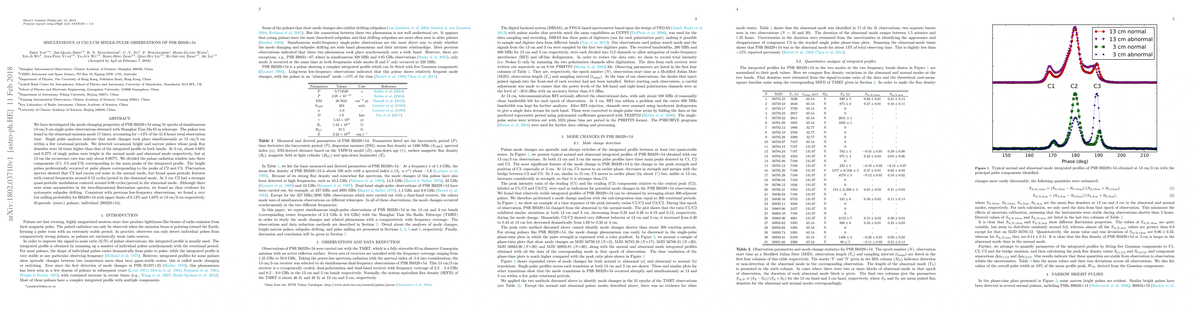 Researchers observed PSR B0329+54 using 31 epochs of simultaneous 13 cm/3 cm single-pulse observations, finding that the pulsar changed modes 17 times, with bright pulses occurring primarily at specific pulse phases.