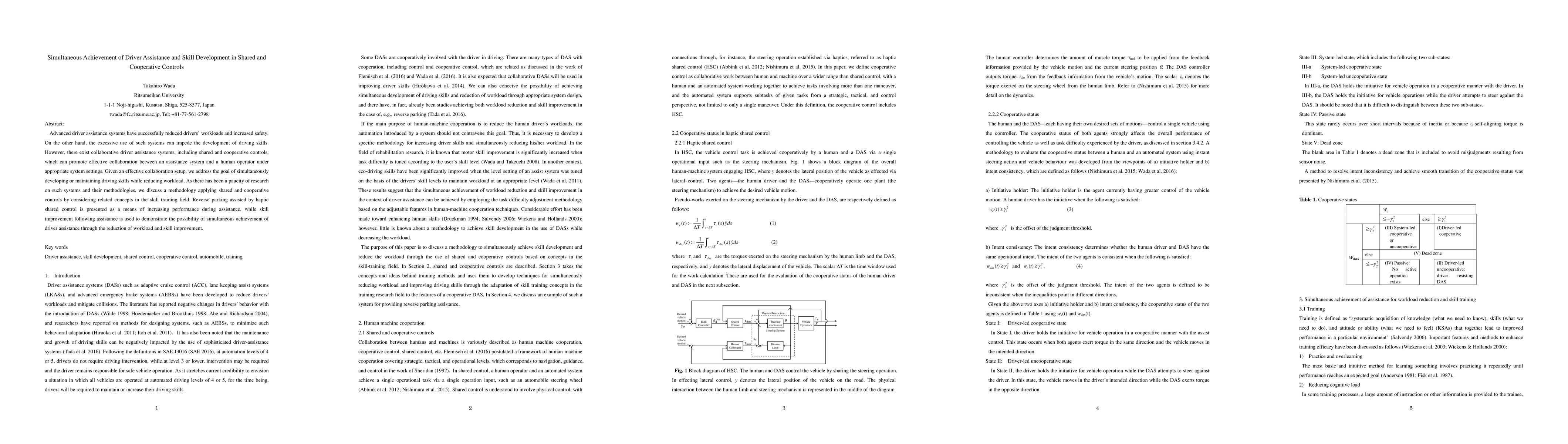 This paper explores collaborative driver assistance systems that reduce driver workload while simultaneously developing or maintaining driving skills through shared and cooperative controls. It proposes a methodology integrating these concepts and demonstrates skill improvement through reverse parking assisted by haptic shared control.