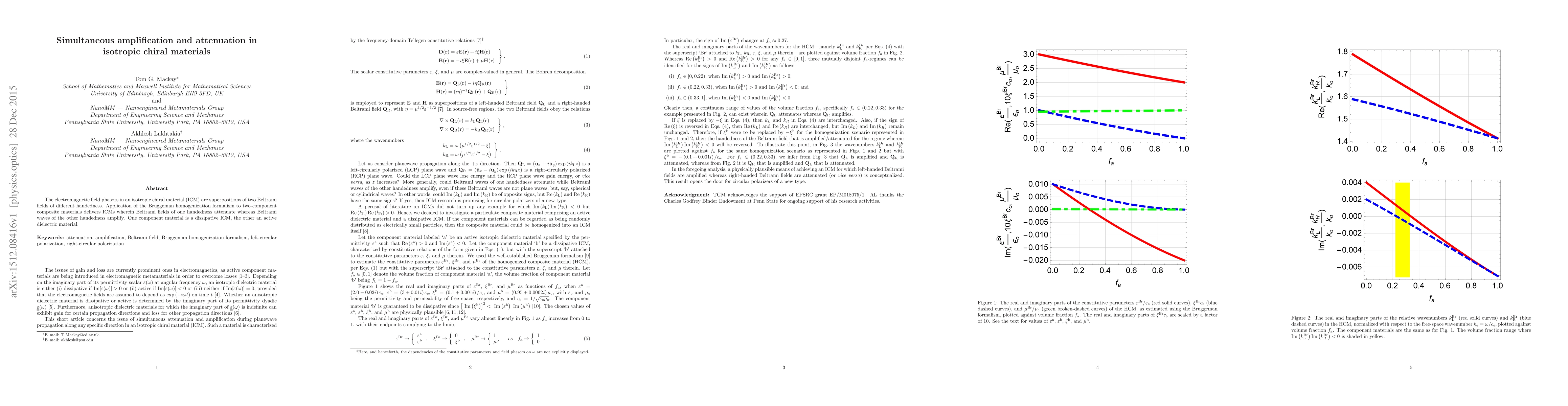 The electromagnetic field phasors in an isotropic chiral material (ICM) are superpositions of two Beltrami fields of different handedness. Application of the Bruggeman homogenization formalism to two-component composite materials delivers ICMs wherein Beltrami fields of one handedness attenuate whereas Beltrami waves of the other handedness amplify. One component material is a dissipative ICM, the other an active dielectric material.