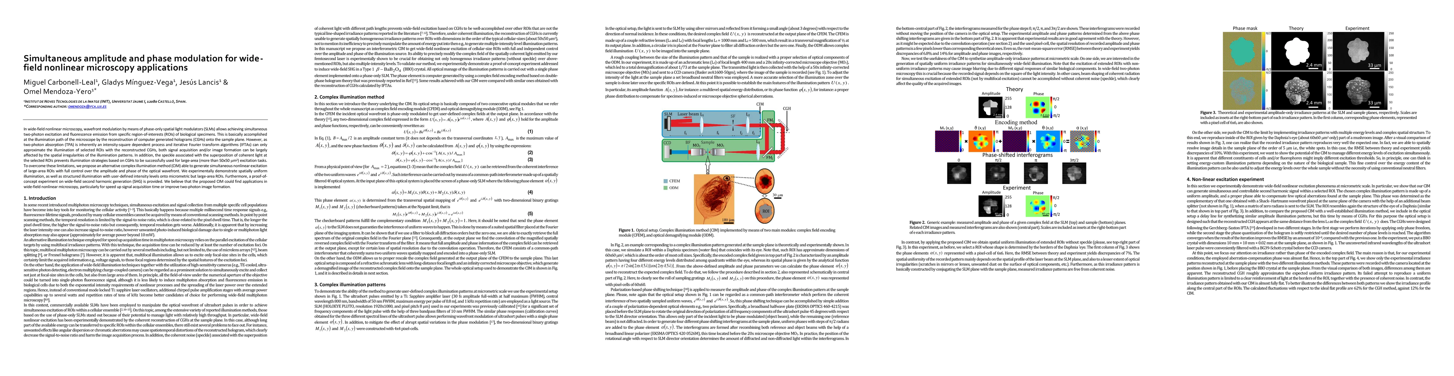 This paper proposes a complex illumination method (CIM) for wide-field nonlinear microscopy to achieve simultaneous amplitude and phase modulation, enabling uniform and structured illumination over large-area regions of interest. The CIM addresses limitations in traditional phase-only spatial light modulators and computer-generated holograms, offering improved signal acquisition and image formation.