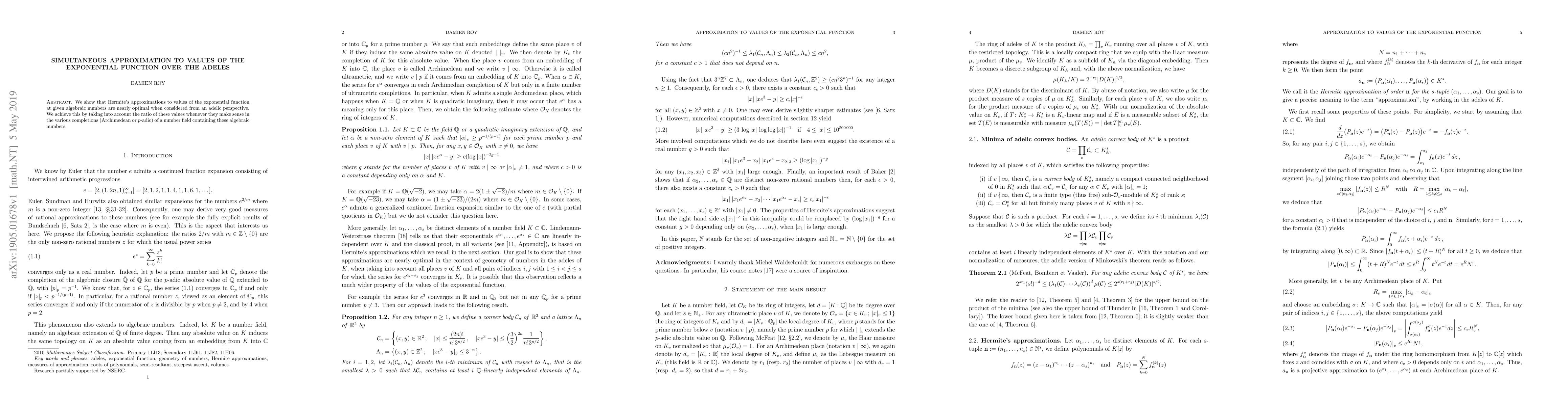 We show that Hermite's approximations to values of the exponential function at given algebraic numbers are nearly optimal when considered from an adelic perspective. We achieve this by taking into account the ratio of these values whenever they make sense in the various completions (Archimedean or $p$-adic) of a number field containing these algebraic numbers.