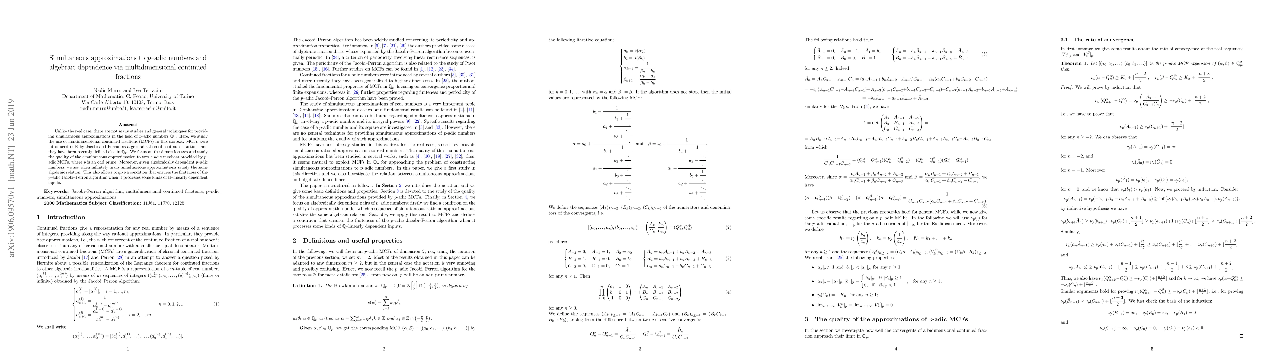 This paper investigates the application of multidimensional continued fractions (MCFs) in $p$-adic numbers to provide simultaneous approximations and explore algebraic dependence. It focuses on dimension two and examines how $p$-adic MCFs approximate two $p$-adic numbers, while also determining conditions for infinitely many simultaneous approximations to maintain algebraic relations.