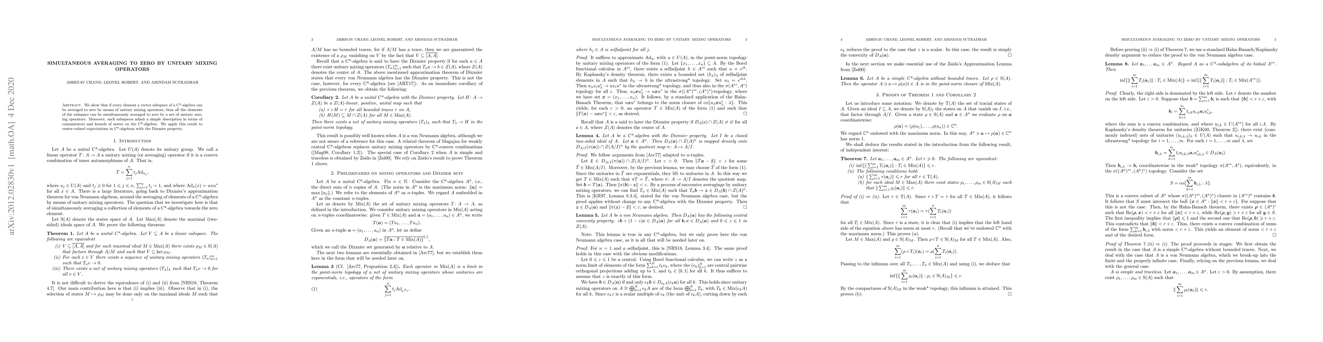 We show that if every element a vector subspace of a C*-algebra can be averaged to zero by means of unitary mixing operators, then all the elements of the subspace can be simultaneously averaged to zero by a net of unitary mixing operators. Moreover, such subspaces admit a simple description in terms of commutators and kernels of states on the C*-algebra. We apply this result to center-valued expectations in C*-algebras with the Dixmier property.