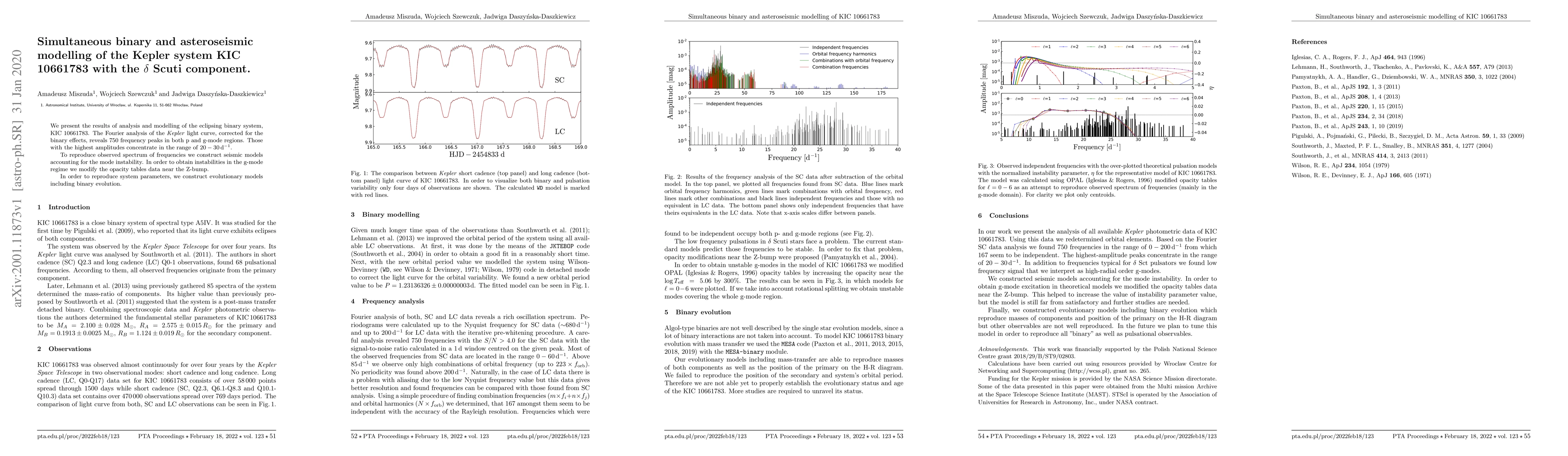We present the results of analysis and modelling of the eclipsing binary system, KIC 10661783. The Fourier analysis of the Kepler light curve, corrected for the binary effects, reveals 750 frequency peaks in both p and g-mode regions. Those with the highest amplitudes concentrate in the range of 20-30 d$^{-1}$. To reproduce observed spectrum of frequencies we construct seismic models accounting for the mode instability. In order to obtain instabilities in the g-mode regime we modify the opacity tables data near the Z-bump. In order to reproduce system parameters, we construct evolutionary models including binary evolution.